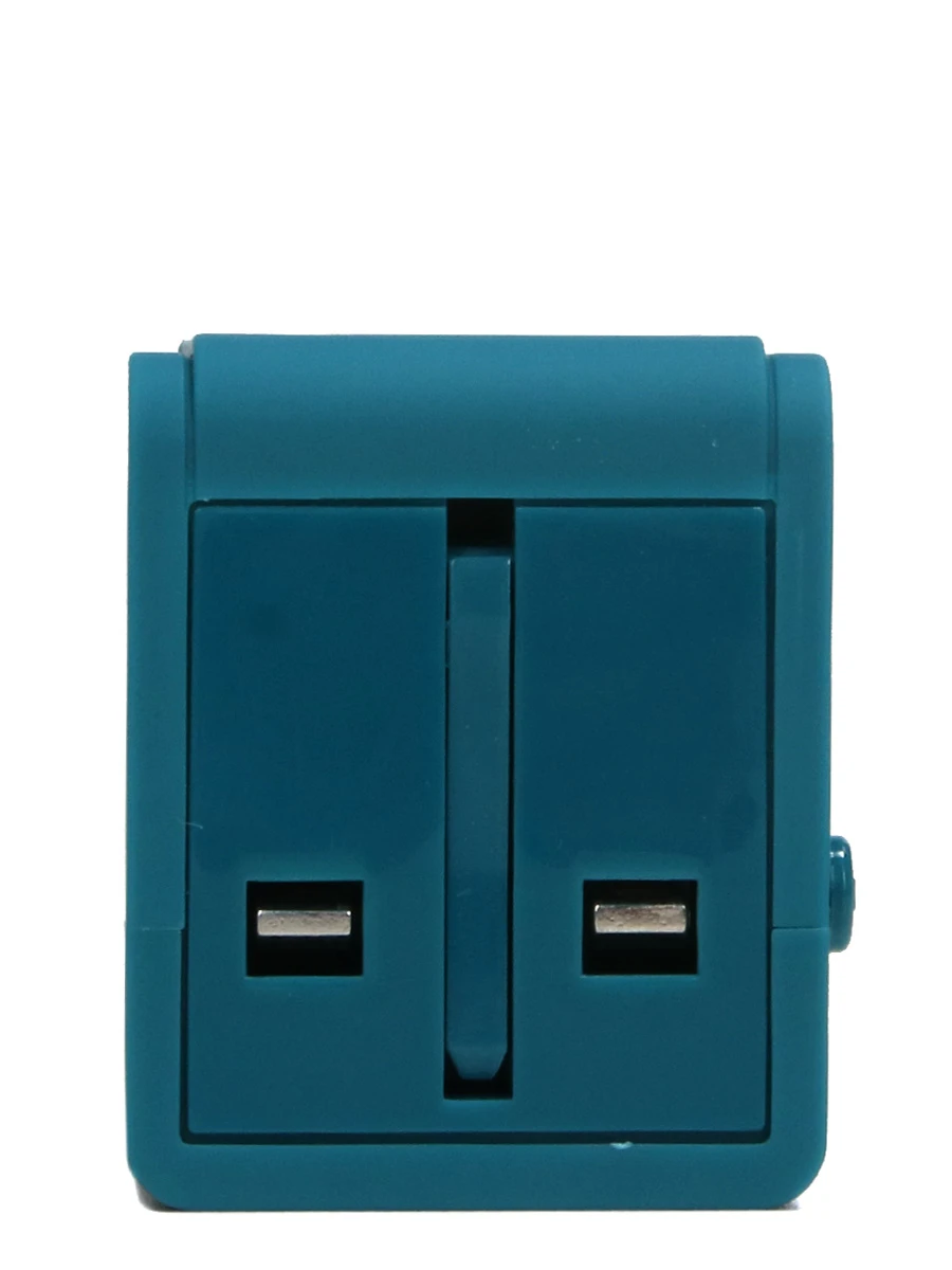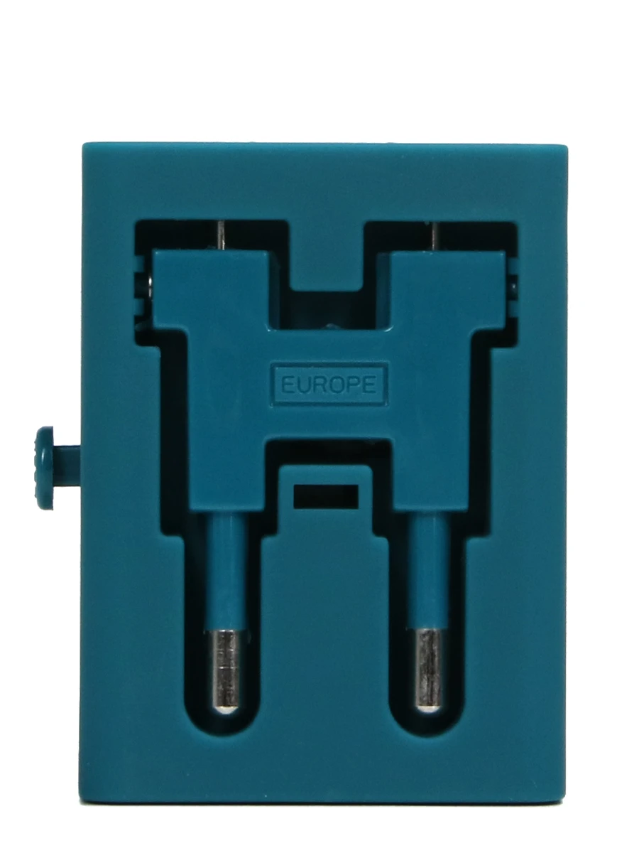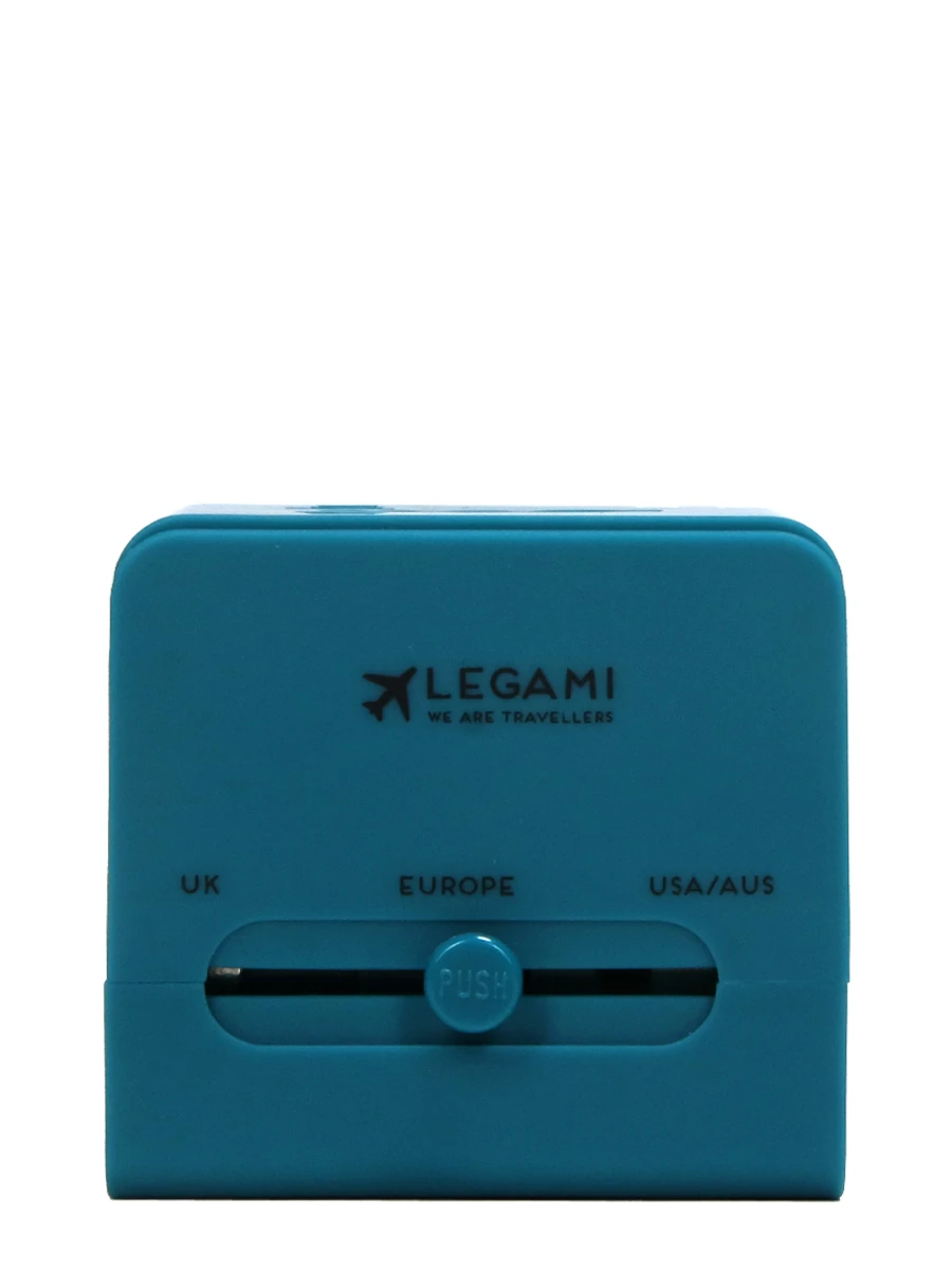 L’adaptateur universel Legami dispose sur le côté d’un petit curseur coulissant permettant de faire sortir les fiches électriques utiles en fonction du pays dans lequel vous vous trouvez. Ses 2 ports USB présents en façade permettent d’enficher directement les câbles de chargement du téléphone ou d’une tablette, notamment.