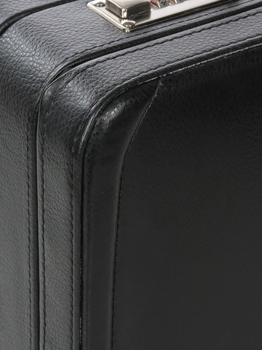 L’attachĂ©-case ordinateur Davidts Yale se ferme par des attaches que l’on peut sĂ©curiser par des serrures Ă code. Il se porte Ă la main, Ă l’aide de son Ă©lĂ©gante poignĂ©e rigide garnie de cuir. Des rivets de protection mĂ©talliques prĂ©servent son revĂŞtement des Ă©raflures lorsqu’il est posĂ© au sol.