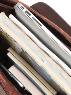 La sacoche ordinateur The Chesterfield Brand Toledo possède un grand compartiment pouvant accueillir une multitude de dossiers au format A4. Une poche matelassĂ©e dotĂ©e d’une sangle Ă scratch est pensĂ©e pour loger un ordinateur jusqu’à 15 pouces. En face, deux poches plates et une poche zippĂ©e permettent de ranger soigneusement clefs USB, chargeurs et autres accessoires. Sous le rabat, une poche zippĂ©e permet de garder un livre à portĂ©e de main, tandis que le portefeuille, la carte de transport et les clefs peuvent trouver leur place dans les grandes poches extĂ©rieures.