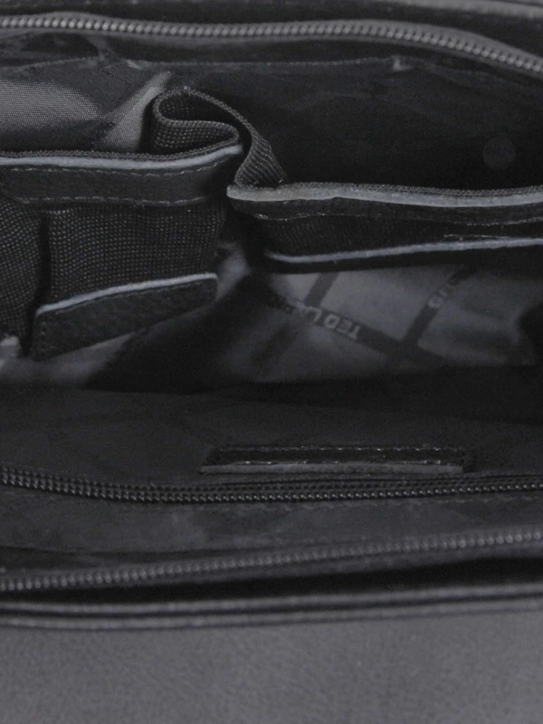 A l’intĂ©rieur, la besace en cuir Ted Lapidus Achille offre un espace de rangement avec plusieurs poches pratiques pour le tĂ©lĂ©phone portable, les cartes de visite et les stylos. A l’extĂ©rieur on trouve une poche zippĂ©e au dos et une poche plate situĂ©e sous le rabat.