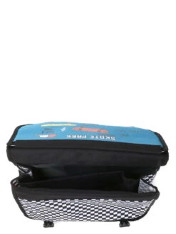 L’aménagement intérieur du cartable trolley Réversible Pol Fox Skate 2 offre deux compartiments et une poche plate sécurisée par un scratch. Les livres, les classeurs pour feuilles A4 et les cahiers de format 24 x 32 cm se glissent avec la trousse dans les compartiments, facilement accessibles grâce à la large ouverture du rabat bi-face. La poche plate accueille quant à elle le trousseau de clefs familial, le paquet de mouchoirs et le goûter qui accompagnera la récréation. Enfin, un porte-bouteille latéral garde la gourde à portée de main.