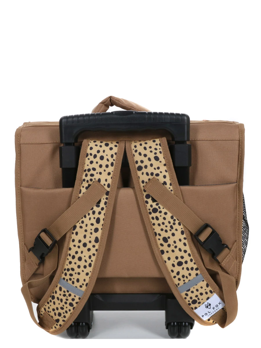 Le cartable à roulettes Réversible Pol Fox You Rock 38 cm affiche son côté rock avec son imprimé animalier sauvage et ses pimpantes inscriptions. Il attirera les petites élèves du CP au CE2 aussi coquettes que pleines d’énergie. Grâce à son rabat réversible, il change de look selon l’envie. Pour ne pas ajouter de fatigue inutile aux journées d’école, il se tracte confortablement à l’aide de son trolley. Pour que les éventuelles flaques d’eau ne salissent ni son revêtement ni son contenu, il est doté d’une doublure intérieure, d’un fond renforcé et d’un revêtement en polyester déperlant. Un porte-adresse fixe évite les longues recherches en cas d’oubli.