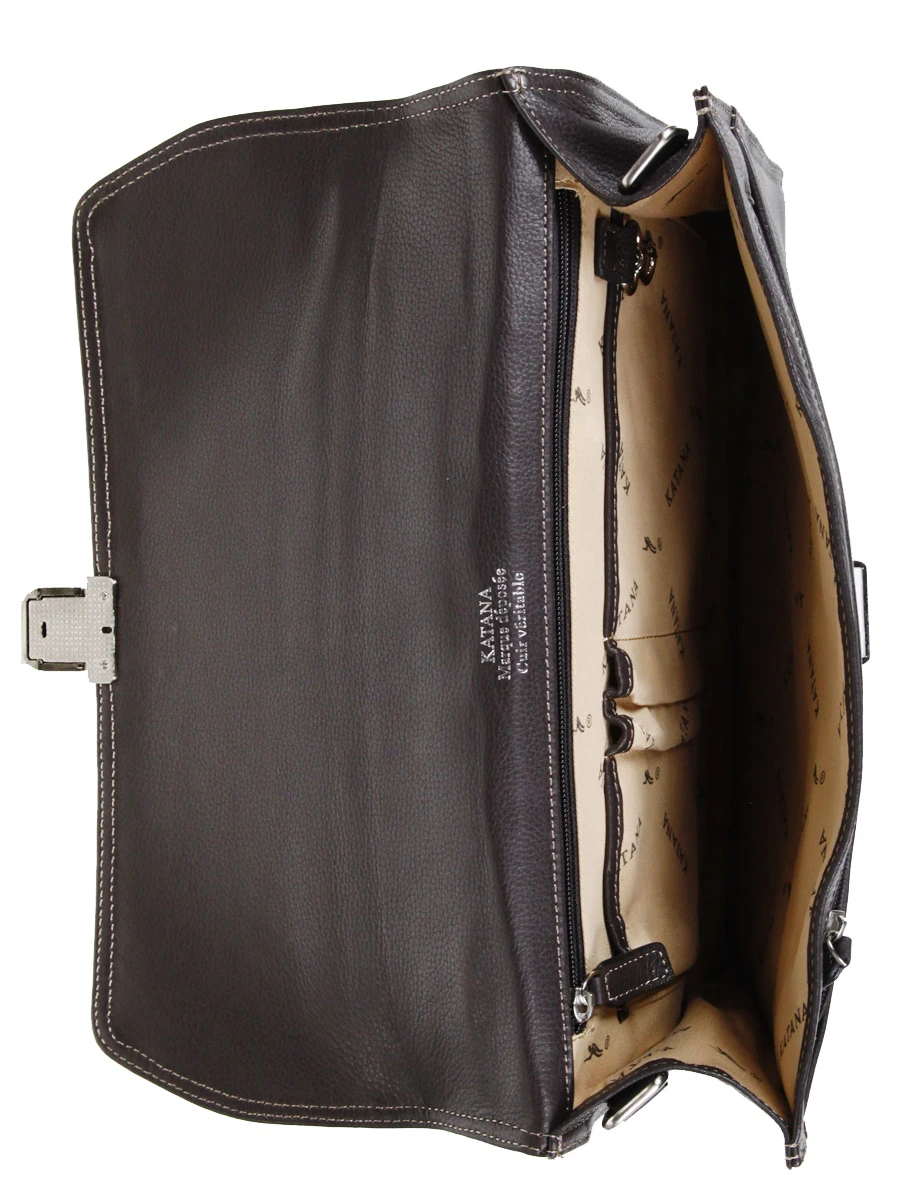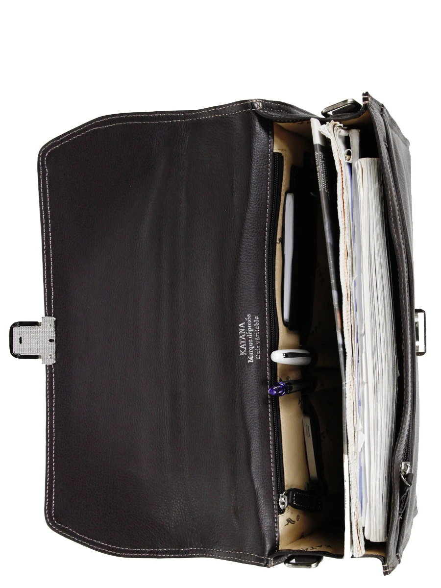 Cette serviette Katana Architecte se ferme Ă l’aide d’un rabat en cuir et d’une attache mĂ©tallique. Elle est Ă©galement sĂ©curisĂ©e par une serrure Ă clĂ©. A l’intĂ©rieur, le compartiment dispose de porte stylos et de 2 poches plates (format Smartphone ou cartes de visite). A cĂ´tĂ©, il est possible de glisser divers documents et dossiers professionnels.