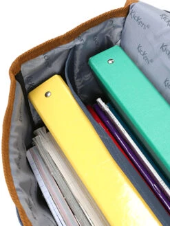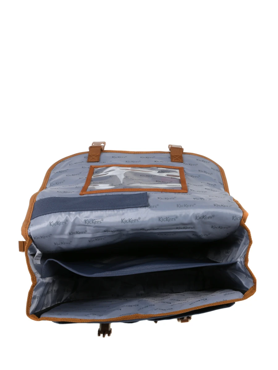 Le rabat du cartable Kickers Boy cache sous les attaches Ă boucle qui le dĂ©corent une fermeture à attaches clips beaucoup plus facile Ă manier pour les jeunes enfants. Ses deux compartiments doublĂ©s logent cahiers et classeurs de formats A4 et 24 x 32 cm, manuels scolaires, agenda et trousse.Une poche spĂ©cialement rĂ©servĂ©e Ă la règle l’empĂŞche de s’Ă©garer entre deux livres et un porte-emploi du temps est placĂ© sous le rabat. Les deux poches frontales ouvertes accueillent les petits indispensables tels que le paquet de mouchoirs, le sac de bille ou l’en-cas pour la rĂ©crĂ©ation.