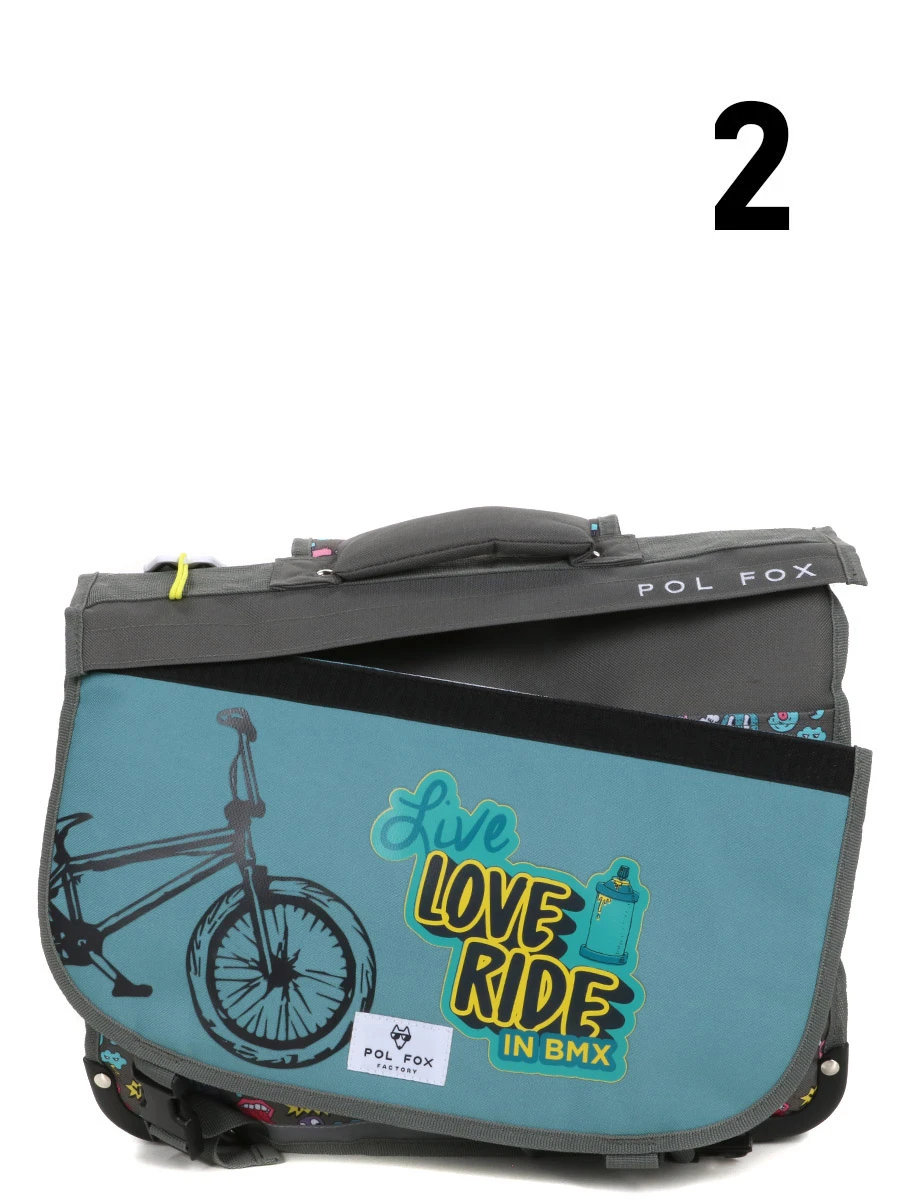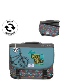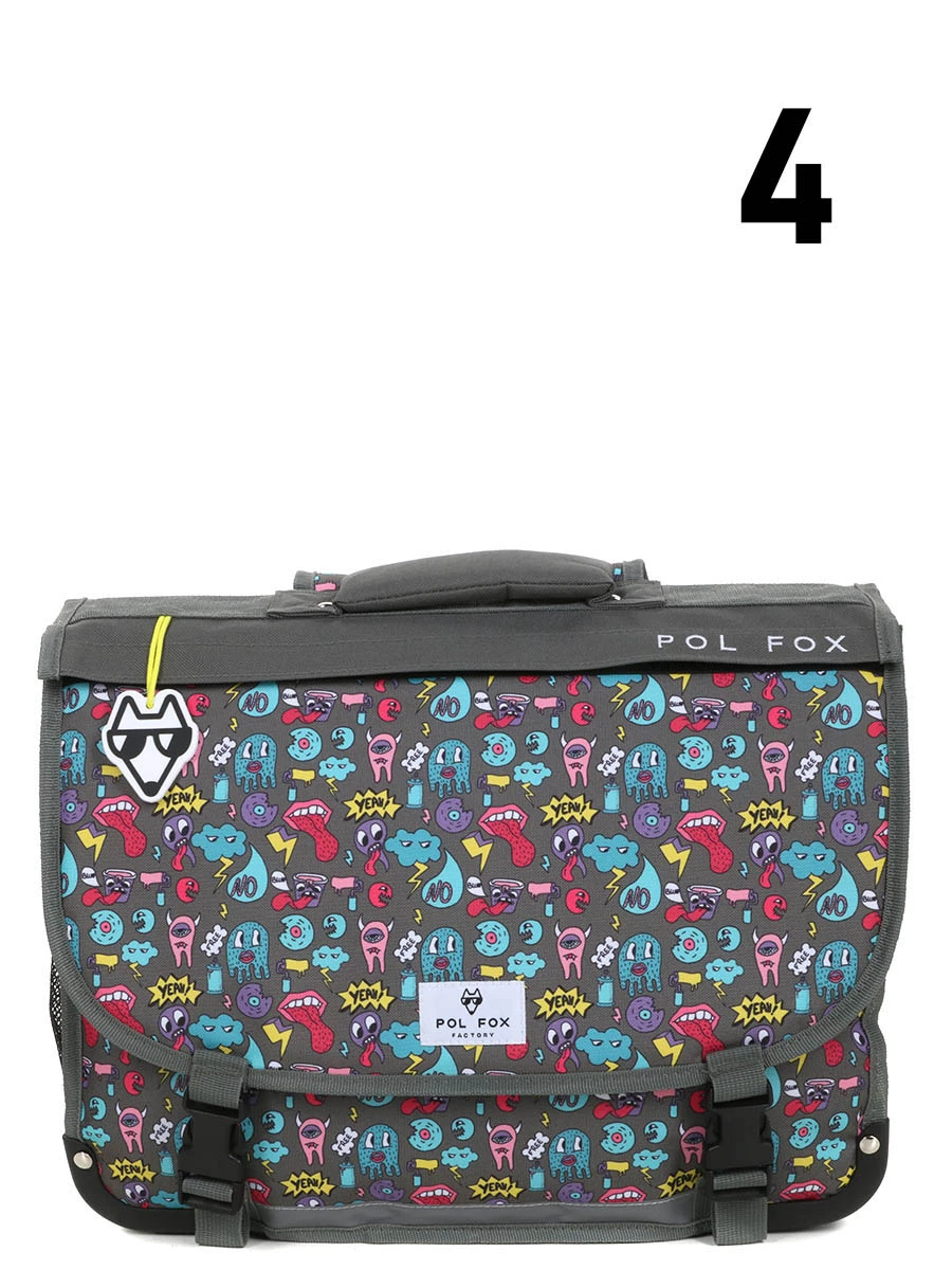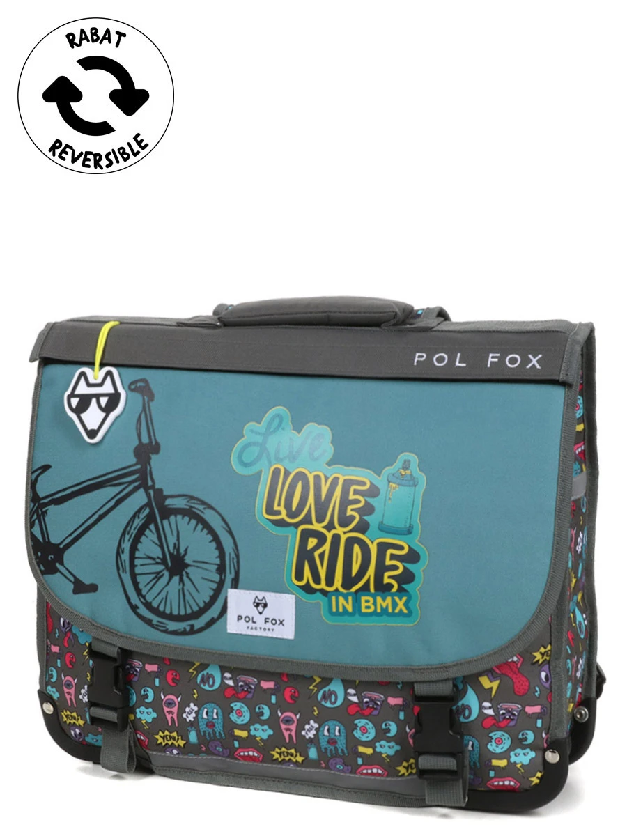 Le cartable RĂ©versible Pol Fox Rider 41 cm invite Ă des journĂ©es d’Ă©cole pleines d’Ă©nergie et de fantaisie avec son design Ă©voquant l’univers du tag et la pratique du vĂ©lo BMX. Son rabat Ă double face se retourne par un ingĂ©nieux système de scratch pour changer de style sans changer de cartable. Fonctionnel, son amĂ©nagement offre les possibilitĂ©s de rangement nĂ©cessaires du CE2 au CM2. Le confort n’est pas en reste, grâce Ă plusieurs dispositifs ergonomiques. On apprĂ©cie en outre la prĂ©sence d’un porte-adresse, cachĂ© au dos du joli logo de la marque.