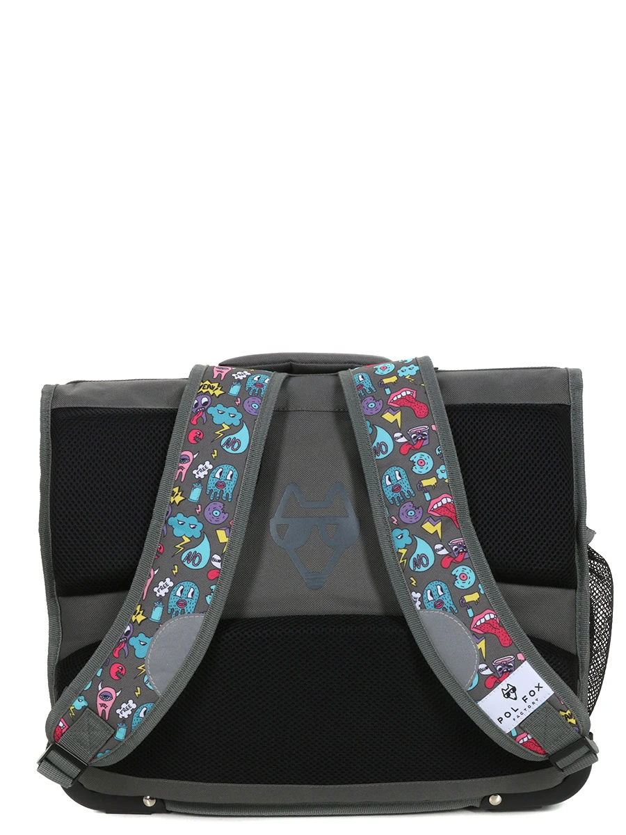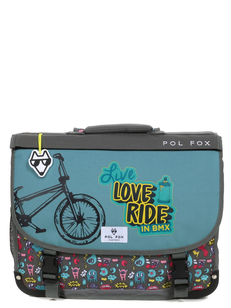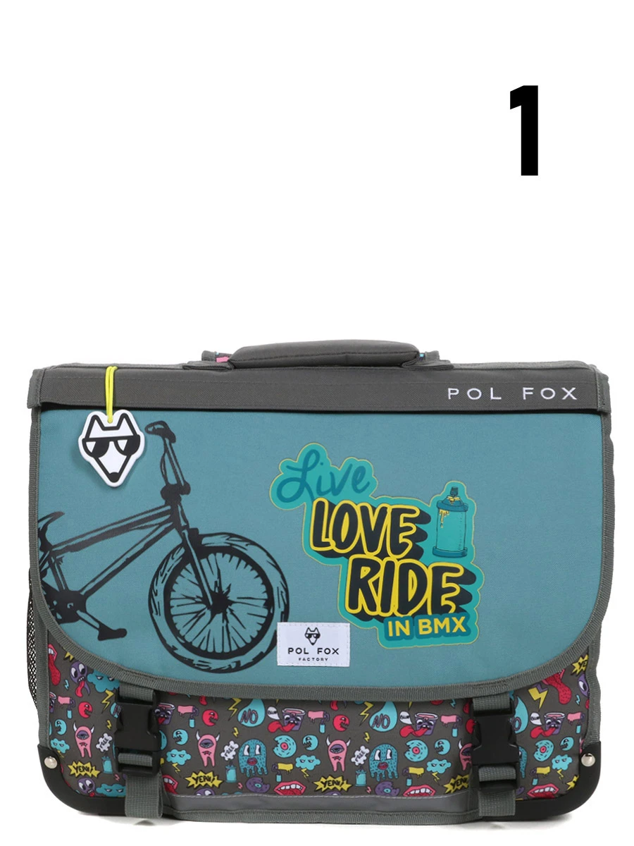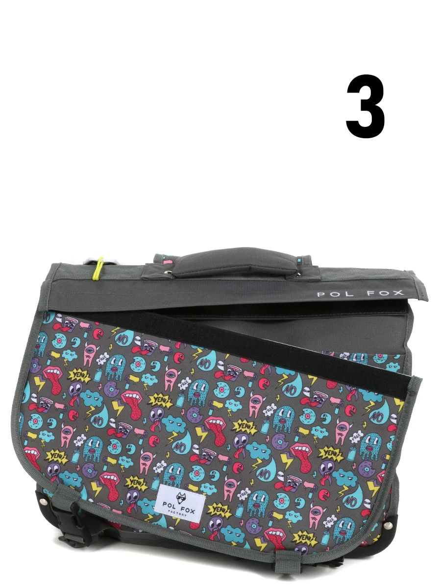 Le cartable RĂ©versible Pol Fox Rider 41 cm invite Ă des journĂ©es d’Ă©cole pleines d’Ă©nergie et de fantaisie avec son design Ă©voquant l’univers du tag et la pratique du vĂ©lo BMX. Son rabat Ă double face se retourne par un ingĂ©nieux système de scratch pour changer de style sans changer de cartable. Fonctionnel, son amĂ©nagement offre les possibilitĂ©s de rangement nĂ©cessaires du CE2 au CM2. Le confort n’est pas en reste, grâce Ă plusieurs dispositifs ergonomiques. On apprĂ©cie en outre la prĂ©sence d’un porte-adresse, cachĂ© au dos du joli logo de la marque.