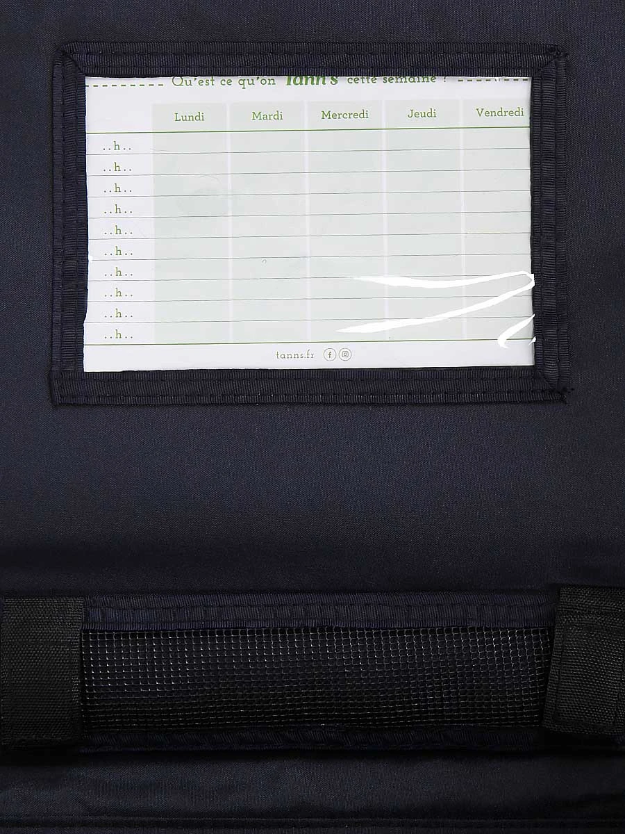 Le cartable Tann’s Antonia renferme 2 grands compartiments doublĂ©s adaptĂ©s pour les grands cahiers 24 x 32, les classeurs Ă anneaux pour feuilles A4, les petits livres, la trousse et toutes autres affaires utiles au bon dĂ©roulement de la journĂ©e de classe. Pour retrouver en un rien de temps la gomme ou le tube de colle, il est possible de les sĂ©rier Ă part dans sa poche intĂ©rieure zippĂ©e. Sous son rabat, une poche transparente pour l’emploi du temps et une poche plate pour le dĂ©cimètre sont Ă©galement prĂ©sentes. A l’avant, une dernière poche permet de laisser certains effets personnels Ă portĂ©e de main (chouchou, collation, paquet de mouchoirs, etc.).
