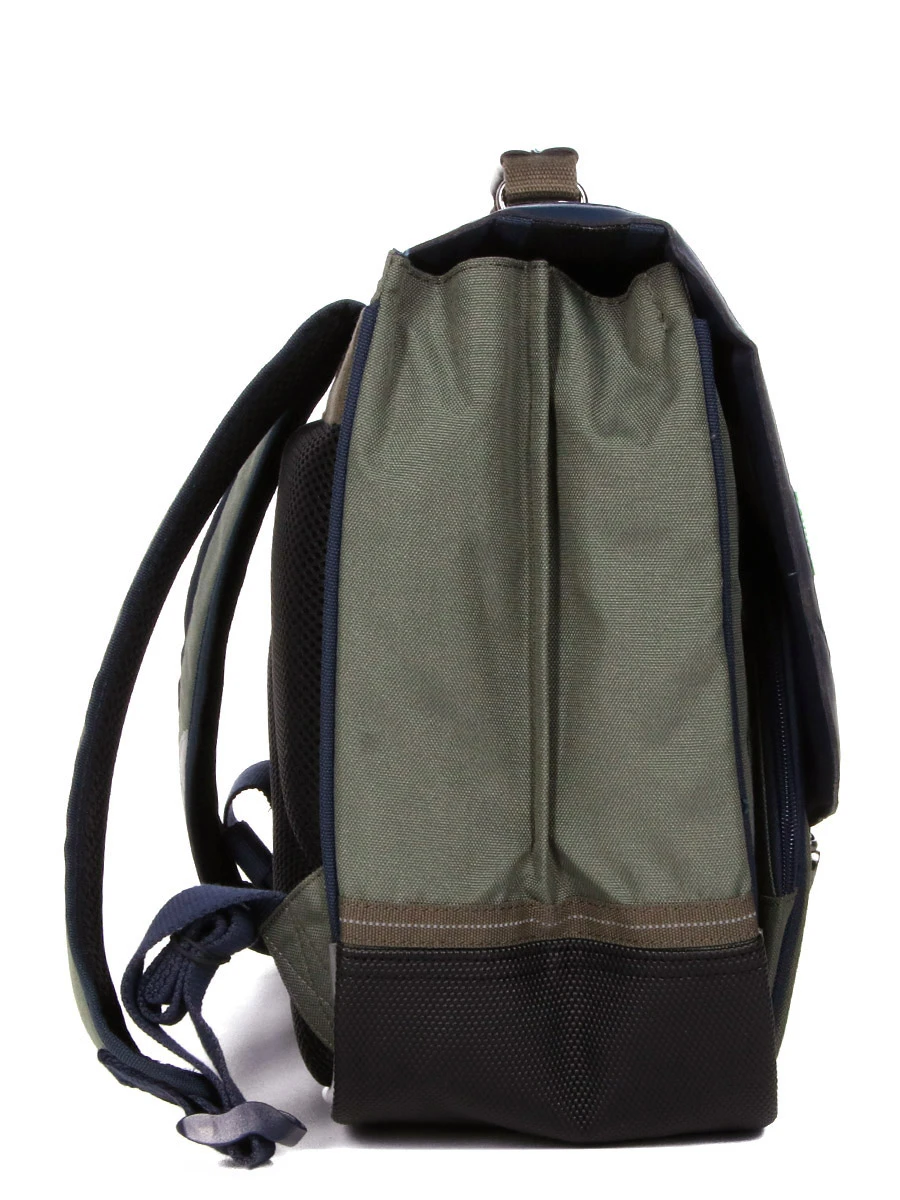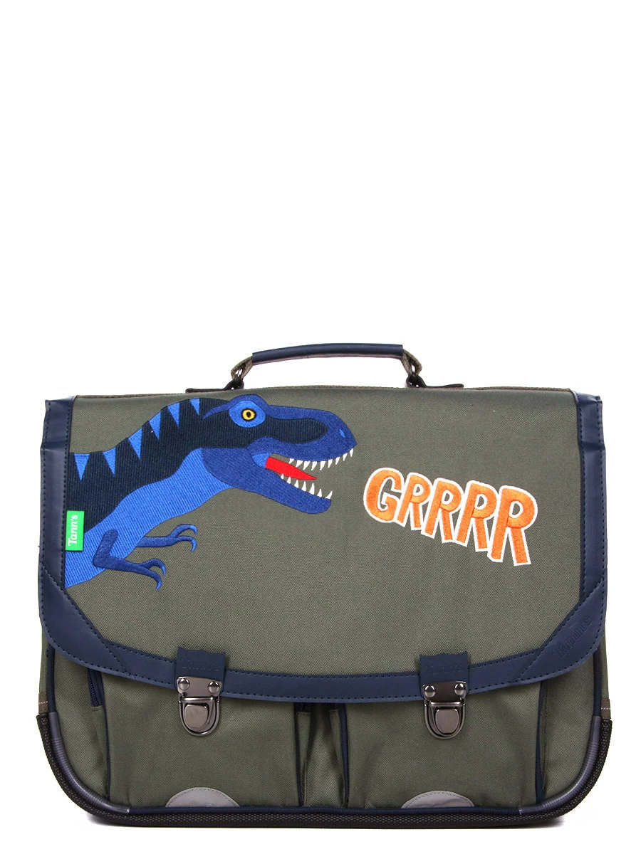 Le cartable Tann’s Oscar 38 cm – 2 boucles ravit les palĂ©ontologues et aventuriers en herbe avec sa grande broderie reprĂ©sentant un T-rex rugissant. Si le passĂ© est fascinant, l’avenir aussi est important, c’est pourquoi il est conçu en polyester fait Ă partir de matières recyclĂ©es. Compatible au format A4 et 24 x 32, il est idĂ©al pour les classes du CP au CE2. Sa doublure intĂ©rieure protège les cahiers et les manuels de l’humiditĂ©.Â