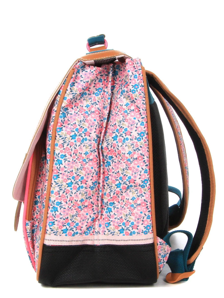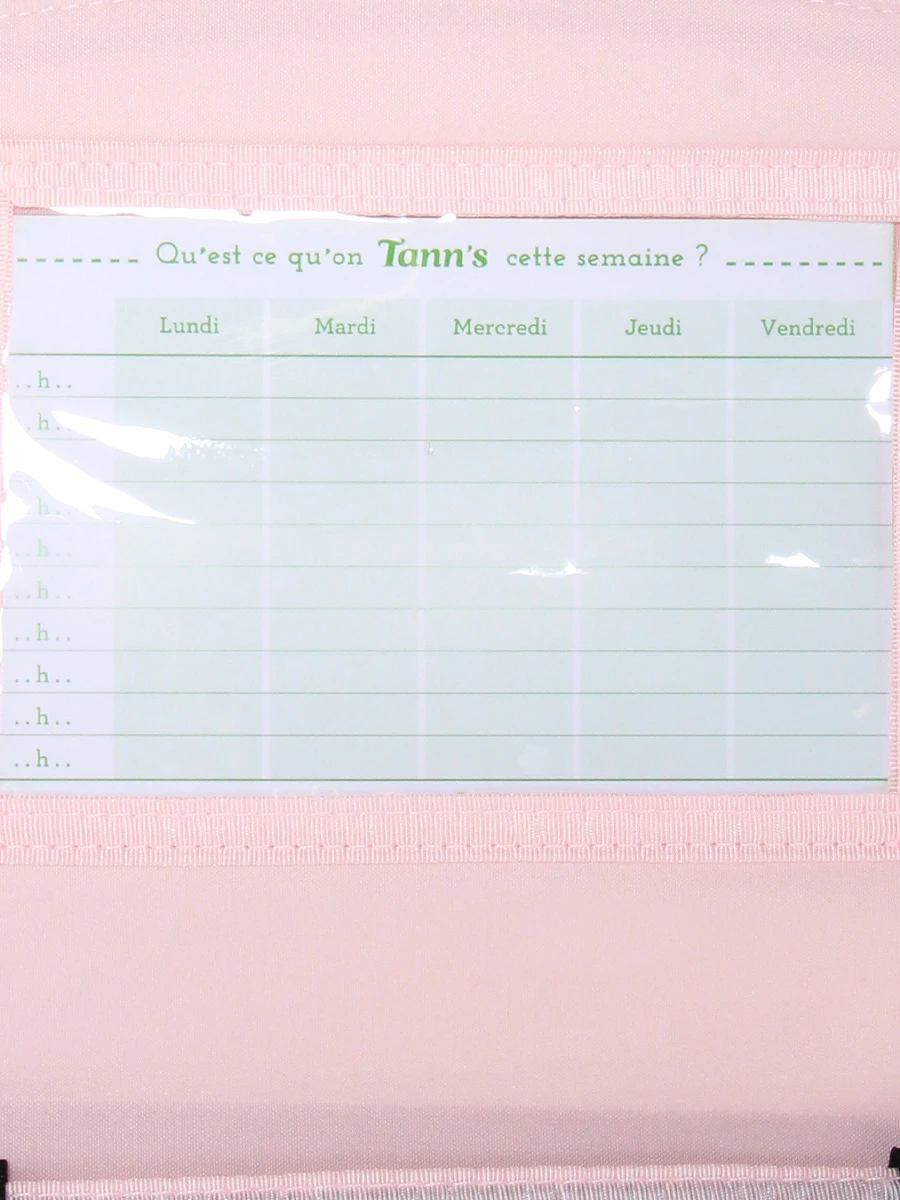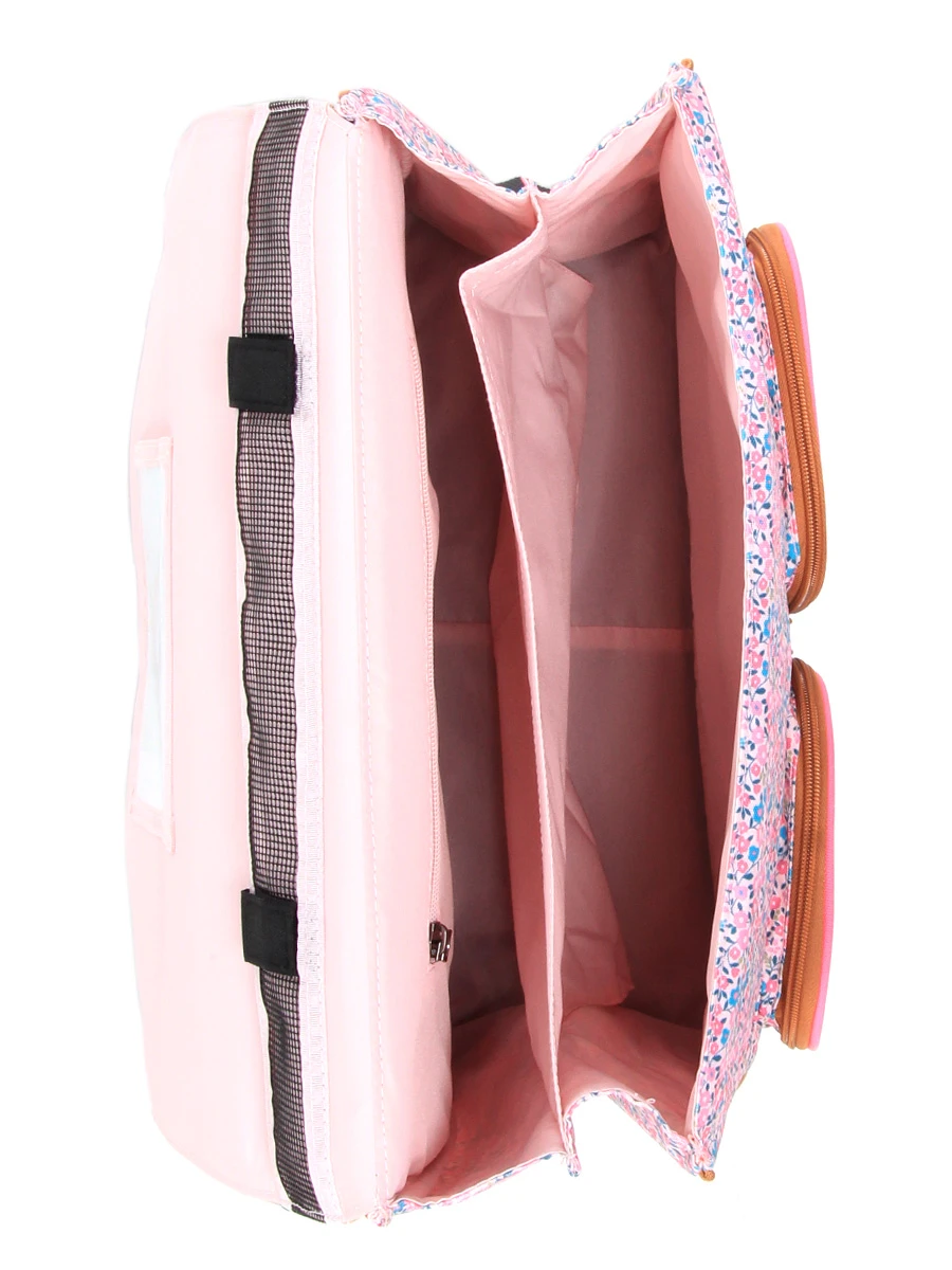 Les deux compartiments du cartable girly Tann’s Victoria accueillent cahiers et livres. Les petits accessoires comme les chouchous et porte-bonheur peuvent être rangés en sécurité dans sa poche intérieure zippée. La règle est maintenue en place dans son passant dédié pour la retrouver facilement. Pour garder la carte de cantine et le goûter en accès rapide, il est muni de deux poches frontales. Un porte-étiquette et un porte planning permettent de faciliter la vie des parents et le travail des enseignants.