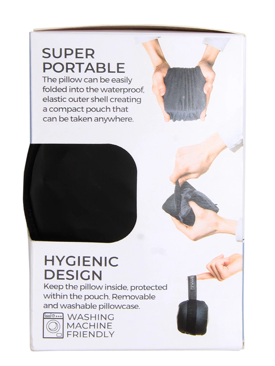 Ce coussin Banale Mini Pillow se replie sur lui mĂŞme afin de ne prendre que le minimum de place dans le sac Ă dos ou le sac Ă main. Il se transporte par la suite Ă l’aide d’une poignĂ©e Ă©lastique. La housse est lavable en machine, une manière pratique de le nettoyer rĂ©gulièrement si besoin.