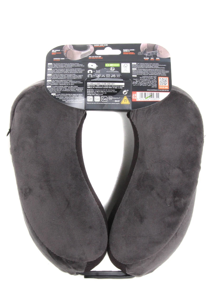 Le coussin de voyage Go Travel Ultimate 3.0 est un tour de cou haut de gamme bĂ©nĂ©ficiant des meilleures technologies pour des voyages aussi reposants qu’une sieste Ă la maison. PrĂ©cisĂ©ment conçu sur le plan de l’ergonomie, il est Ă©galement très pratique d’utilisation et prĂ©sente un revĂŞtement velours Ă©lĂ©gant. Petit plus : la housse du coussin est pourvue d’une poche latĂ©rale, utile pour garder Ă portĂ©e de main par exemple un masque et des bouchons d’oreille (non fournis).
