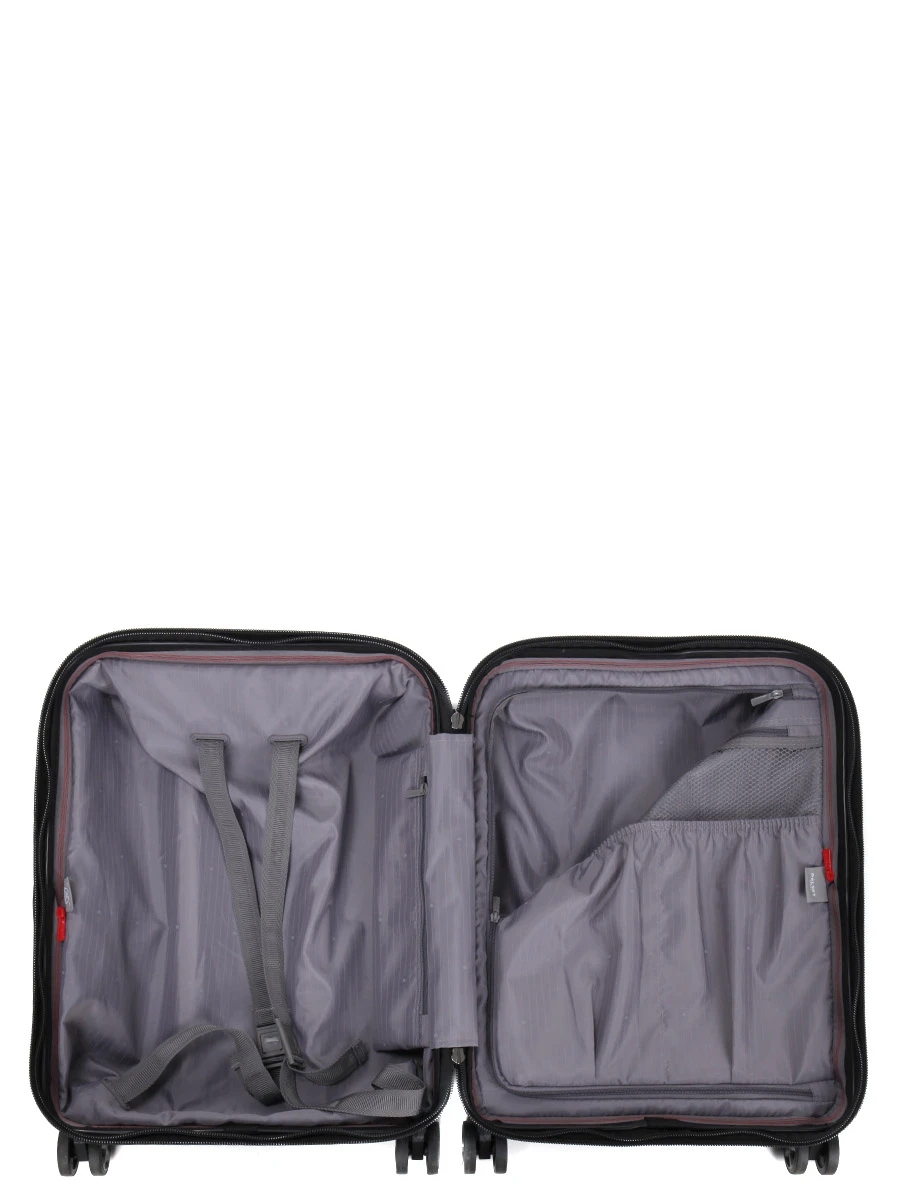 Les deux compartiments des valises rigides Delsey Promenade Hard 2.0 sont pourvus, pour l’un, de sangles de maintien rĂ©glables, et pour l’autre, d’un plateau de sĂ©paration zippĂ©. Le premier est rĂ©servĂ© aux vĂŞtements qui arriveront impeccables Ă destination et le second, aux objets plus encombrants comme la trousse de toilette ou les chaussures de rechange. Les plus petits Ă©lĂ©ments se glissent dans l’une des quatre poches intĂ©rieures, afin de ne pas se perdre au fond de la valise. Notons que la doublure intĂ©rieure est amovible par un système de zip et lavable Ă 30°.