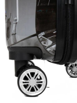 L’ensemble 3 valises Madisson Holiday Memories se compose d’une valise cabine et 2 valises soute extensibles alliant un look tendance et original Ă un espace de rangement intelligent et un système de roulage confortable. En effet, elles bĂ©nĂ©ficient d’une fabrication mĂ©langeant ABS et polycarbonate pour une meilleure rĂ©sistance Ă l’usure et aux salissures. Sur les 2 plus grandes tailles, des renforts latĂ©raux sont prĂ©sents pour une protection additionnelle antichocs. Leur coque arbore en sus des imprimĂ©s photographiques graphiques mĂŞlant images en couleurs et en noir et blanc pour un style unique. Elles sont parfaites pour les vacances de toute la famille ou pour accompagner les nomades lors d’escapades, de longs sĂ©jours… Bon Ă savoir, la valise cabine est compatible avec les normes EasyJet et Air France.