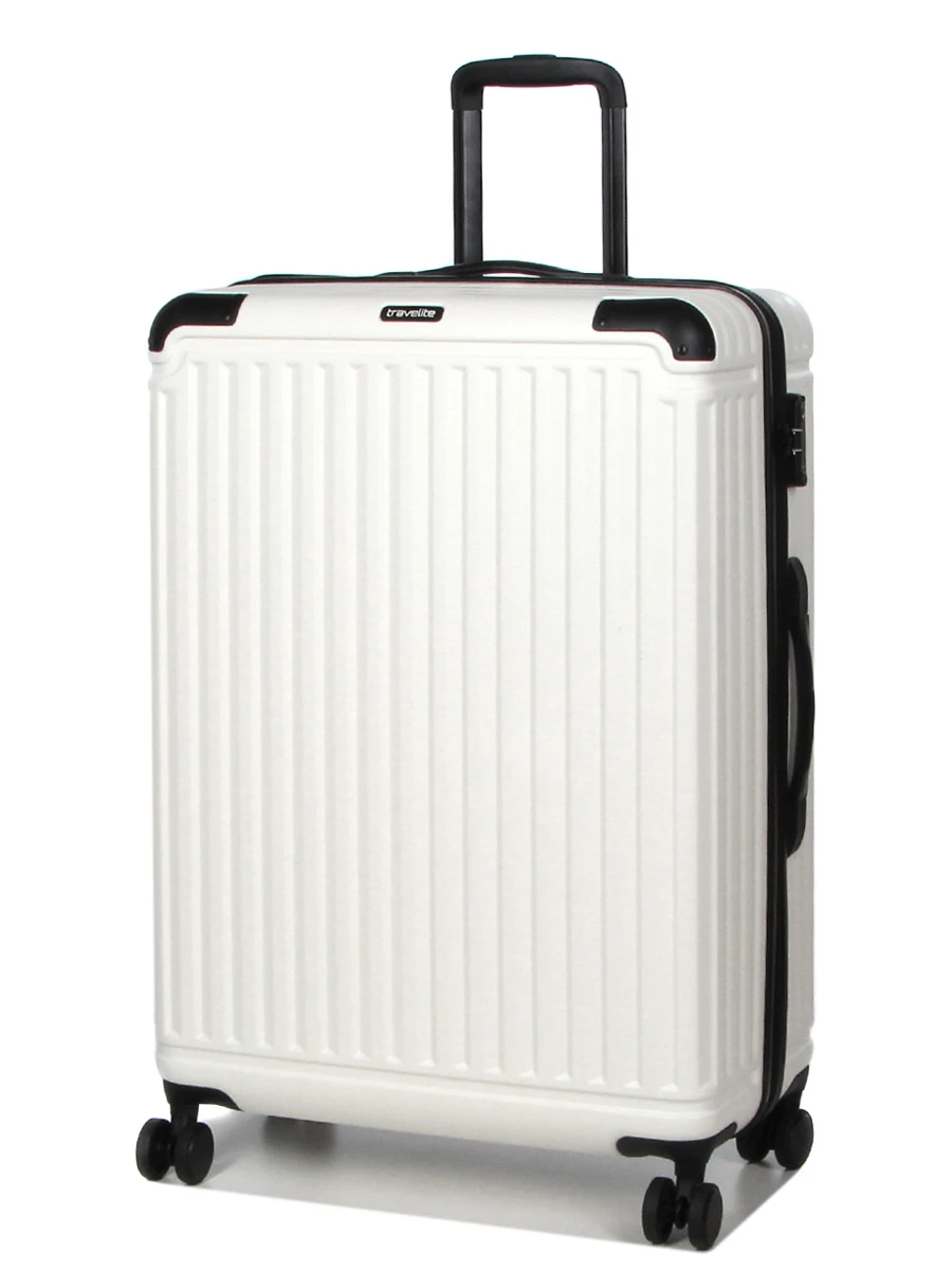 Les valises soute Travelite Cruise sont pourvues d’une serrure TSA Ă code pour des trajets l’esprit serein – y compris si l’on vient Ă passer les douanes Ă©tats-uniennes. La valise cabine dispose quant Ă elle d’une serrure Ă code amplement suffisante lorsque le bagage reste Ă vos cĂ´tĂ©s au sol comme en cabine. Pour une glisse fluide, toutes ces valises sont munies de 4 roues multidirectionnelles et d’une poignĂ©e tĂ©lescopique (Ă position rĂ©glable uniquement pour la taille cabine). En fonction des modèles, une ou deux poignĂ©es de portage complètent le tout pour encore plus de praticitĂ©.