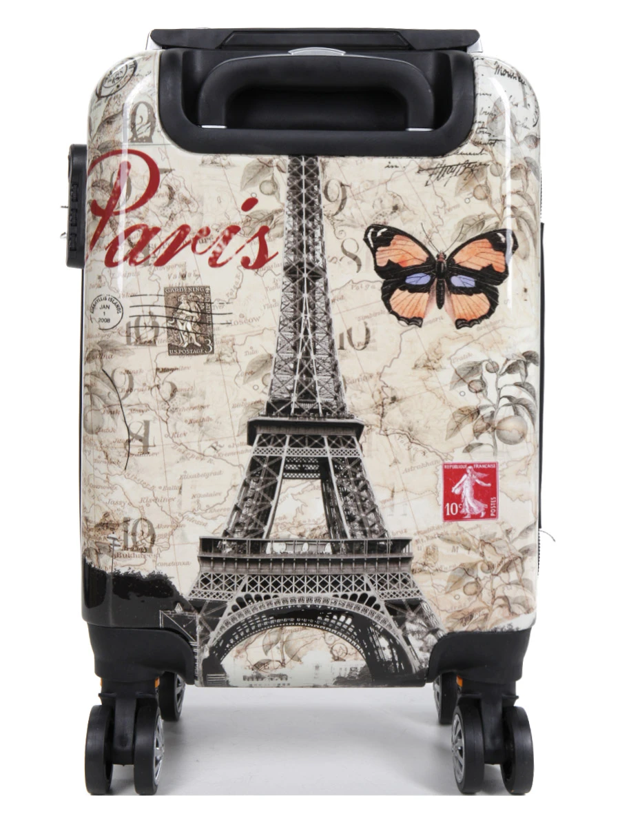 L’ensemble 4 valises Madisson Vieux Paris permet de voyager avec style autant le temps d’un week-end que de grandes vacances. Ces valises en ABS et polycarbonate arborent un bel imprimĂ© vintage mettant Ă l’honneur tout le charme parisien. Pour convenir Ă toutes les occasions, ce set se compose de 2 valises cabine (compatibles, entre autres, aux normes EasyJet et Air France) et de 2 grandes valises extensibles. Au moment de partir, il suffit simplement de choisir celle la plus adaptĂ©e Ă la durĂ©e du sĂ©jour. Elles sont toutes Ă©quipĂ©es d’un dispositif de roulage tout confort et d’un agencement bien pensĂ© pour faire rimer confort et organisation. Pour ne rien gâcher, cet ensemble est disponible Ă un très bon rapport qualitĂ©/prix.