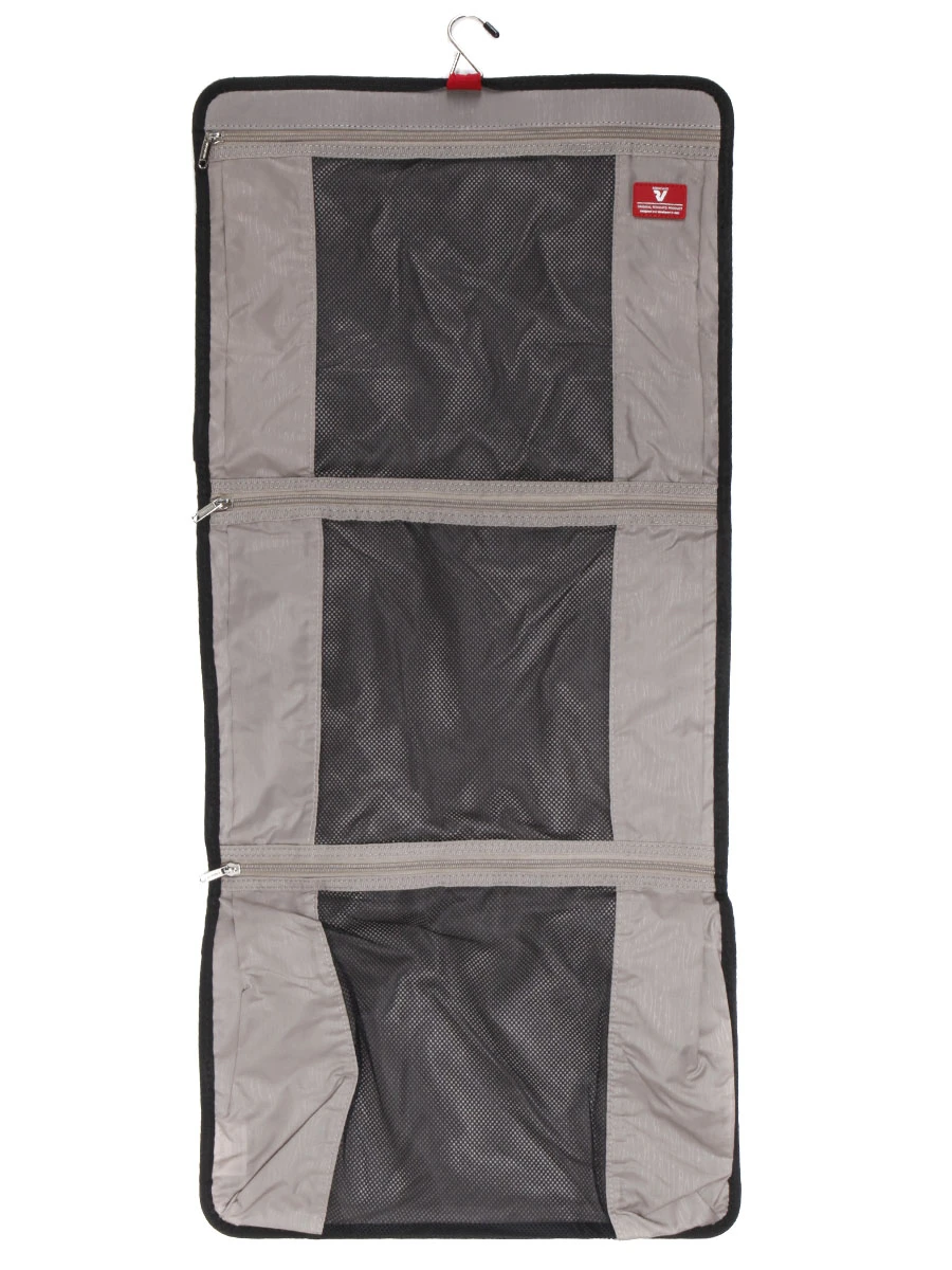 La housse roll-up Roncato Start possède un petit crochet permettant de suspendre un costume sur son cintre (non fourni). Ses 3 poches zippées en maille filet permettent de sérier des paires de chaussette, des cravates et des boutons de manchette, par exemple. Pratique, sa poignée haute permet de le suspendre à une patère pour l’entreposer ouvert et faciliter l’accès à son contenu.
