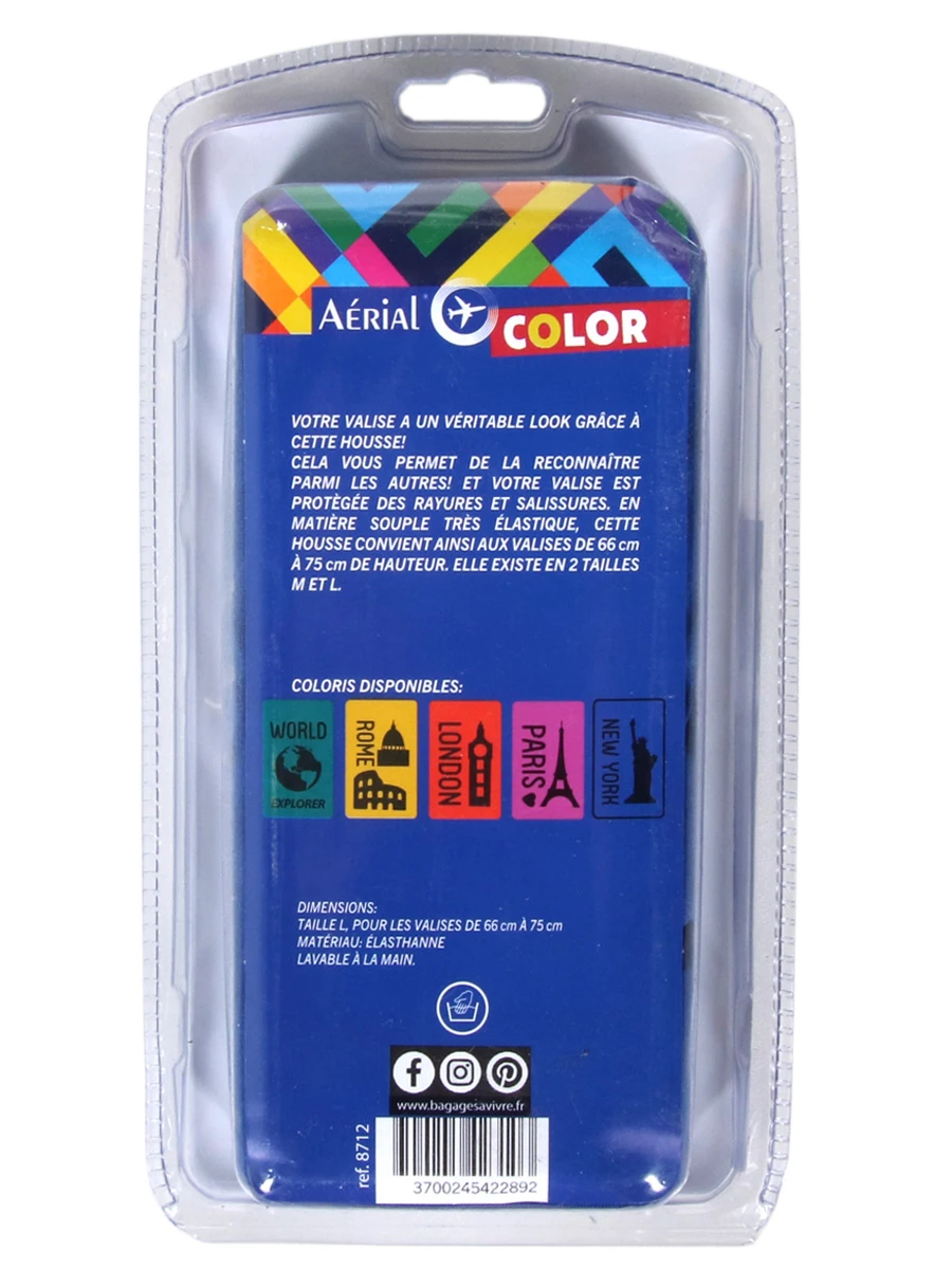 La housse de valise AĂ©rial New York – L possède un coloris Ă©clatant et un motif original permettant de repĂ©rer plus aisĂ©ment votre valise dans la foule ou sur le carrousel Ă bagages de l’aĂ©roport. Sa conception extensible en polyester et Ă©lasthane permet de l’utiliser pour des valises de 66 cm Ă 75 cm de hauteur. LĂ©gère et pratique, elle permet de prĂ©server votre bagages des alĂ©as du voyage et offre une protection complĂ©mentaire en cas de chocs. En prime, elle est disponible Ă un prix très attractif.