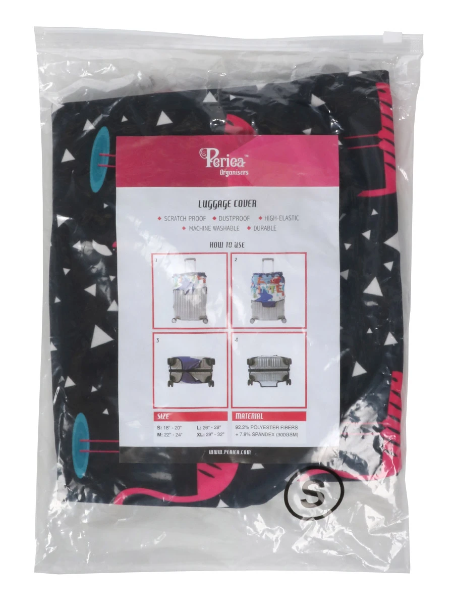 Très fonctionnelle, la protection de valise Periea Black with Pink Flamingos prĂ©voit le passage du trolley et des poignĂ©es de portage Ă travers ses ouvertures en haut et sur le cĂ´tĂ©. Elle se glisse sans difficultĂ© sur la valise puis est maintenue par deux bandes Ă©lastiques et une double fermeture, Ă glissière et Ă attache. Enfin, elle est Ă©galement pratique d’entretien puisqu’elle se lave en machine.