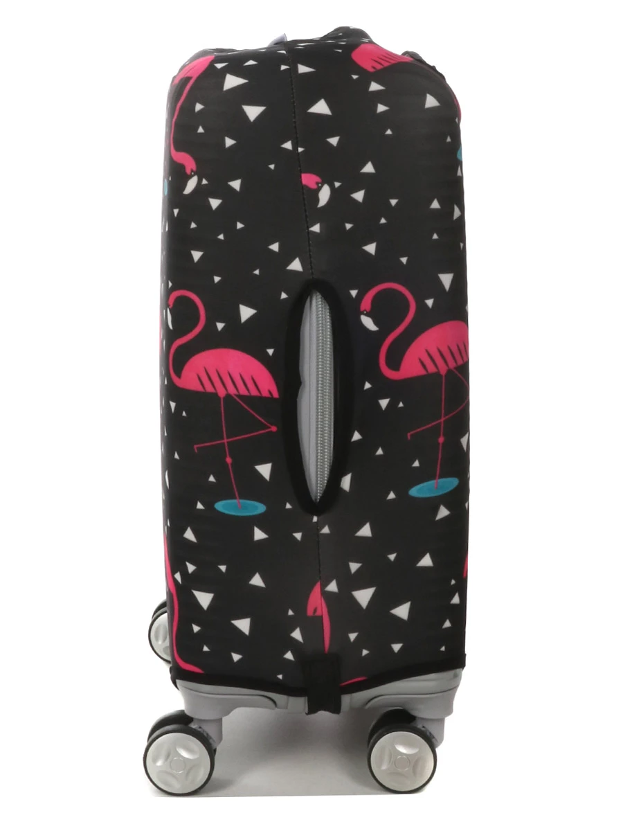 La housse de valise Periea Black with Pink Flamingos S donne de nouvelle couleurs aux bagages qui ont dĂ©jĂ effectuĂ© de nombreux voyages et protège les plus neufs des rayures disgracieuses. Sa conception en polyester et Ă©lasthanne lui offre en effet une certaine rĂ©sistance contre les abrasions et la poussière. Ce matĂ©riau stretch lui permet en outre de recouvrir une valise cabine jusqu’Ă 56 cm de hauteur. Son design Ă la fois Ă©lĂ©gant et original, parsemant son fond noir de flamants roses, plaĂ®t autant aux adultes qu’aux enfants.Â
