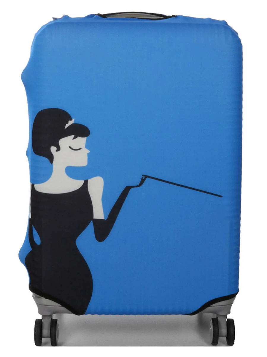 La housse de valise Periea Blue Lady M habille votre valise d’une touche de glamour avec son dessin minimaliste reprĂ©sentant le profil en noir et blanc d’Audrey Hepburn sur un fond bleu vif. Rien de mieux pour redonner du charme Ă une valise un peu usĂ©e ou pour prĂ©server des petites Ă©raflures et de la saletĂ© celle que vous venez d’acquĂ©rir. Autre atout de cette housse : elle donne au bagage une apparence unique qui se repère immĂ©diatement parmi ceux des autres voyageurs. Extensible grâce Ă sa composition Ă base de polyester et d’Ă©lasthanne, elle peut couvrir des valises soute jusqu’Ă Â 68 cm de hauteur. Vendue Ă un petit prix, elle ne grève pas le budget vacances !
