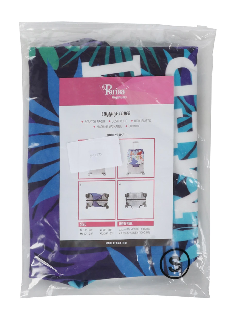 La housse de valise Periea Green and Blue Palm Leaves S augmente la durabilitĂ© de votre valise cabine en la protĂ©geant contre les dommages mineurs comme les Ă©raflures et la saletĂ©. ParĂ© de ses motifs vĂ©gĂ©taux colorĂ©s et de son inscription annonçant l’Ă©tĂ©, votre bagage est fin prĂŞt pour des vacances au soleil et ne risque plus d’ĂŞtre confondu avec un autre. La housse est extensible grâce Ă sa fabrication en polyester et spandex et s’adapte Ă des valises mesurant jusqu’Ă Â 56 cm de hauteur.