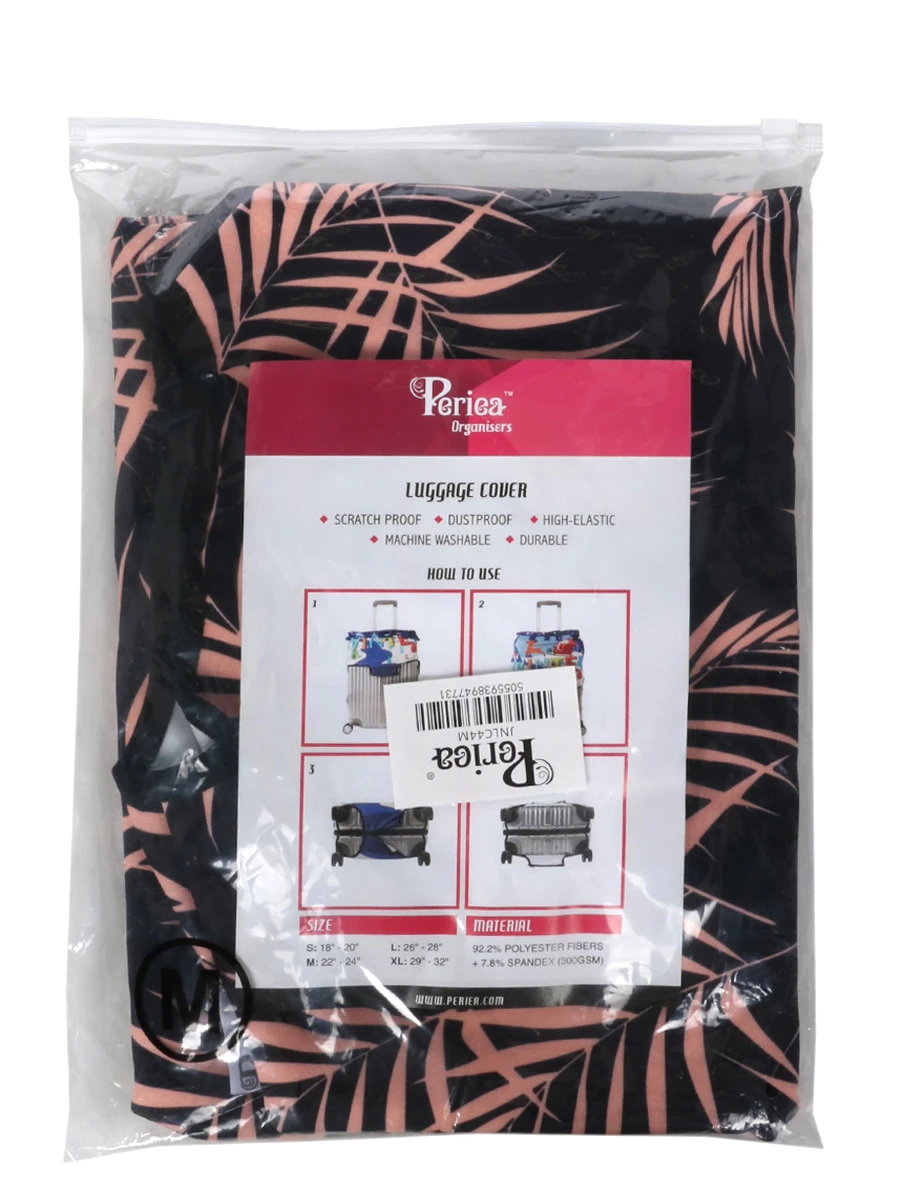 La housse Periea Peach Fern M convient Ă diffĂ©rentes largeurs de valises (jusqu’Ă 68 cm de hauteur) grâce Ă sa conception mĂŞlant polyester et spandex. Son revĂŞtement Ă©pais permet de garder votre valise Ă l’abri des Ă©raflures et des salissures. Ses 3 ouvertures positionnĂ©es sur le haut et l’un des cĂ´tĂ©s permettent de laisser accessibles les poignĂ©es de portage et le trolley. Pour qu’elle reste bien en place, elle peut ĂŞtre attachĂ©e Ă l’aide d’une fermeture zippĂ©e et d’une sangle Ă©lastique Ă attache rapide. Enfin, entre 2 voyages, elle peut ĂŞtre lavĂ©e en machine Ă cycle doux pour retirer toutes traces de poussière.Â