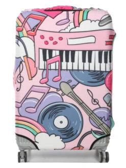 La housse de valise Periea Retro L anime les voyages avec son imprimĂ© dĂ©coratif inspirĂ© par l’univers de la musique. Atypique, elle permet Ă votre valise de se distinguer sur le carrousel Ă bagages de l’aĂ©roport ou encore dans la soute du car lors des excursions en groupe, pour ne plus perdre du temps Ă la chercher. FabriquĂ©e en un matĂ©riau anti-taches et anti-abrasions Ă base de polyester et d’Ă©lasthanne, elle protège la coque de la valise contre ces inĂ©vitables dĂ©sagrĂ©ments. A la fin des vacances, elle se prĂ©pare pour les prochaines en passant simplement en machine.