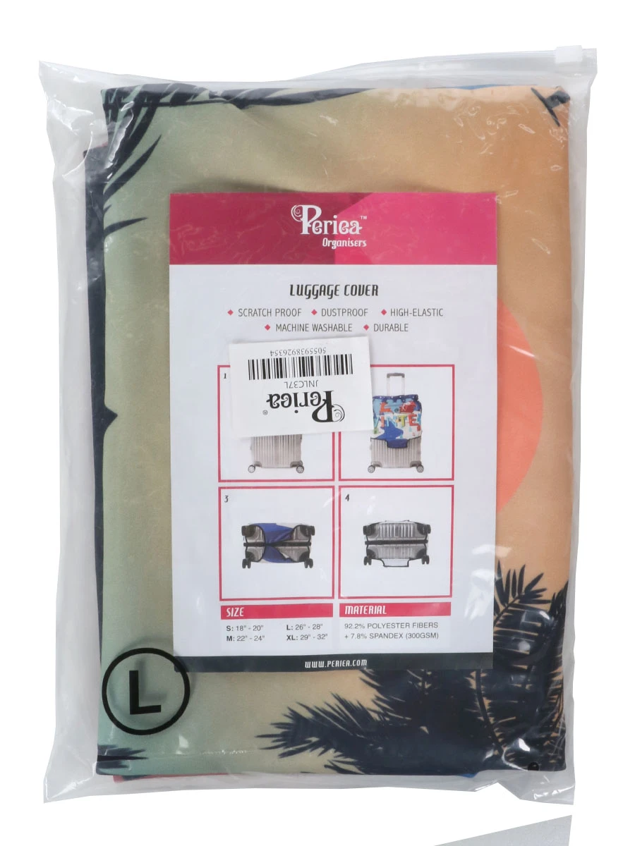 La composition de la grande housse Periea Sunset Flamingos lui confère une extensibilitĂ© qui lui permet de s’adapter Ă des valises soutes d’une hauteur jusqu’Ă 78 cm. Très souple, la housse s’enfile aisĂ©ment sur la valise puis une fermeture Ă glissière et deux bandes Ă©lastiques Ă attache assurent son maintien. Pour ne pas empĂŞcher l’usage du trolley et des poignĂ©es de portage, des dĂ©coupes sont prĂ©vues Ă leur niveau.