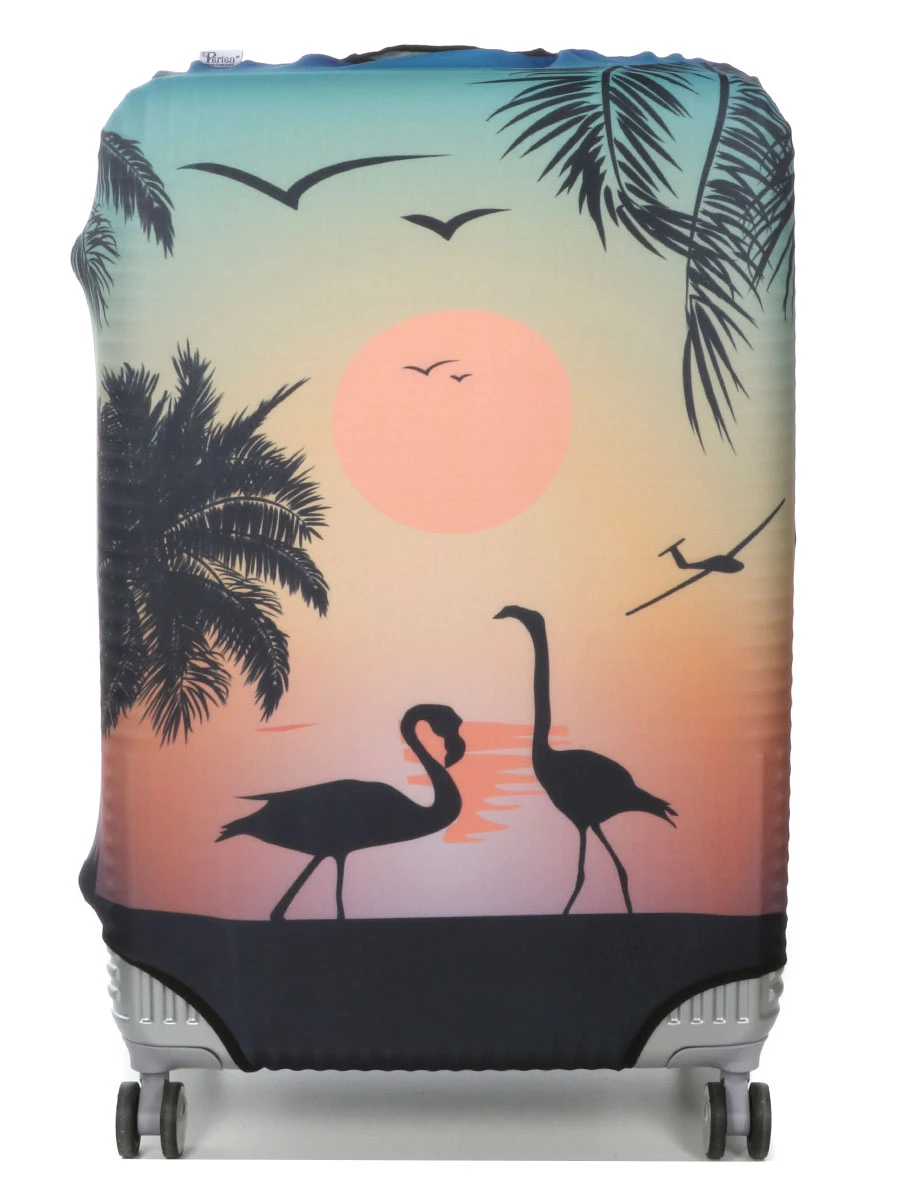 La housse de valise Periea Sunset Flamingos L annonce l’ambiance des vacances avec son imprimĂ© Ă©voquant un paysage de rĂŞve au soleil couchant. Palmiers et flamants roses aident le propriĂ©taire de la valise Ă retrouver sans hĂ©sitation son bagage au milieu de ceux d’autres passagers, par exemple lors des dĂ©placements en avion ou en car. Le tissu en polyester et spandex de la housse offre par ailleurs une rĂ©sistance aux abrasions et aux taches, pour prĂ©server la valise de ces dĂ©sagrĂ©ments. Lui mĂŞme lavable en machine, ce matĂ©riau ne nĂ©cessite aucun entretien particulier.