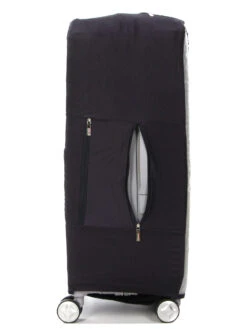 La housse de valise extensible Roncato est très simple d’utilisation : une fois glissĂ©e sur le bagage, elle se fixe à l’aide d’une bande Velcro et elle est maintenue bien en place par sa bande Ă©lastique infĂ©rieure. Le trolley et les poignĂ©es haute et latĂ©rale de la valise demeurent accessibles grâce Ă des ouverture (zippĂ©es au niveau des poignĂ©es Ă main). Un porte-Ă©tiquette intĂ©grĂ© garde visibles les coordonnĂ©es du propriĂ©taire de la valise.