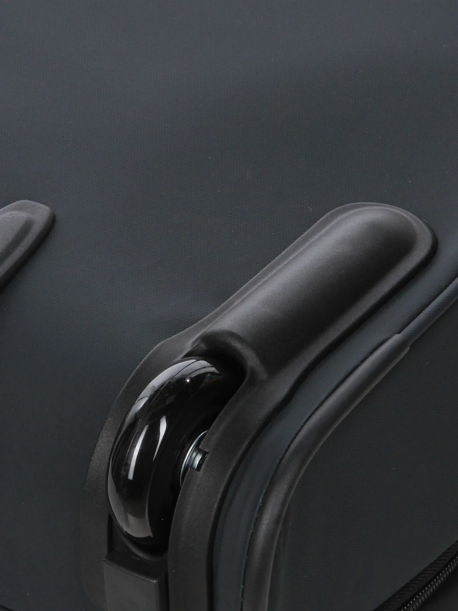 Le pilot case Delsey Parvis Plus ImpermĂ©able se tracte sans effort grâce Ă ses 2 solides roulettes et Ă sa poignĂ©e tĂ©lescopique double tube rĂ©glable Ă plusieurs hauteurs pour s’adapter Ă la taille de son propriĂ©taire. Ses 2 anses renforcĂ©es permettent une prise en main commode. Dessous, des patins rigides sont prĂ©sents pour lui assurer une bonne stabilitĂ© et prĂ©server son revĂŞtement des abrasions. Enfin, pour verrouiller l’accès Ă son contenu, il est possible de glisser son cadenas TSA Ă code dans les curseurs percĂ©s de ses fermetures Ă©clair.