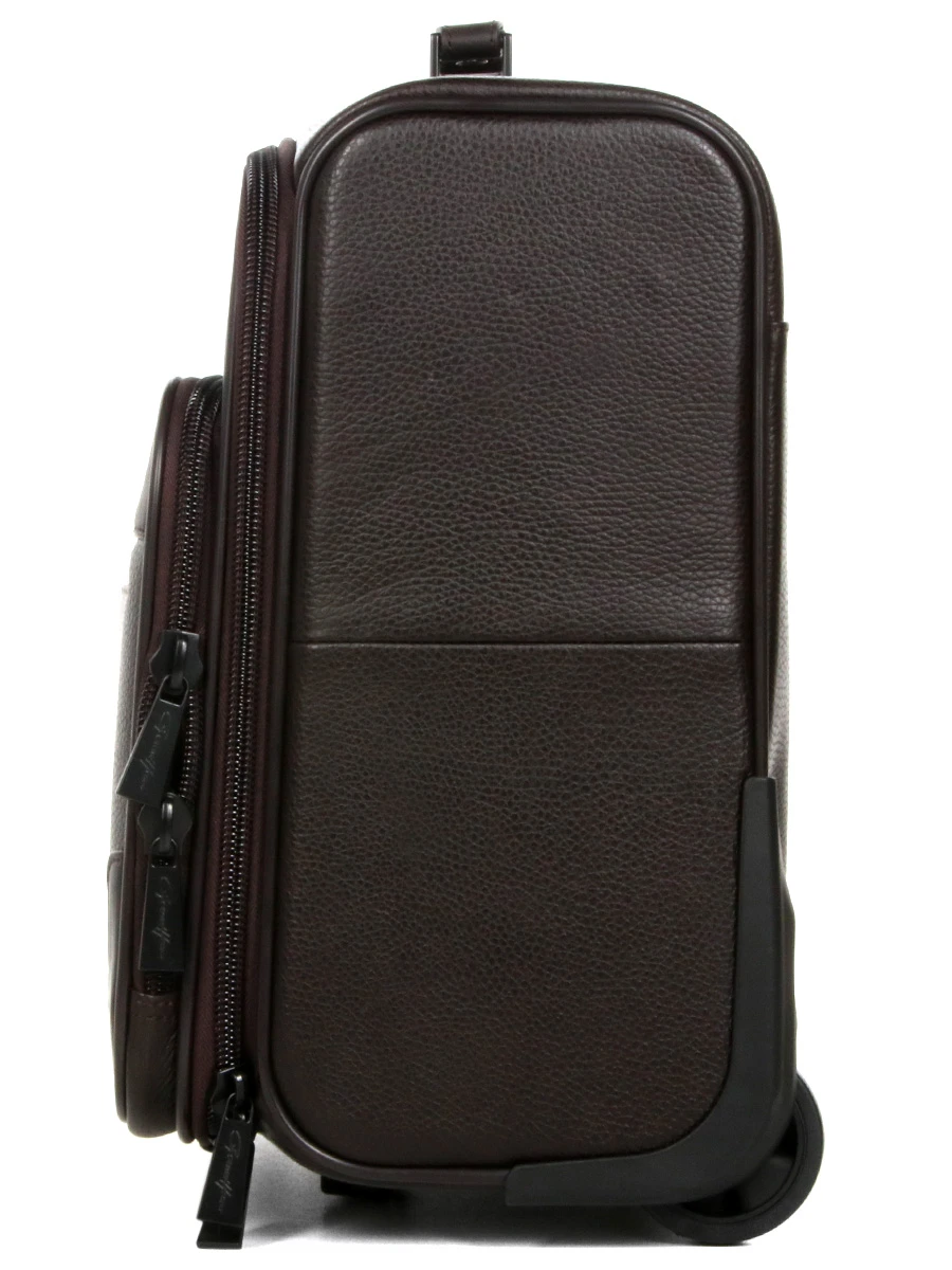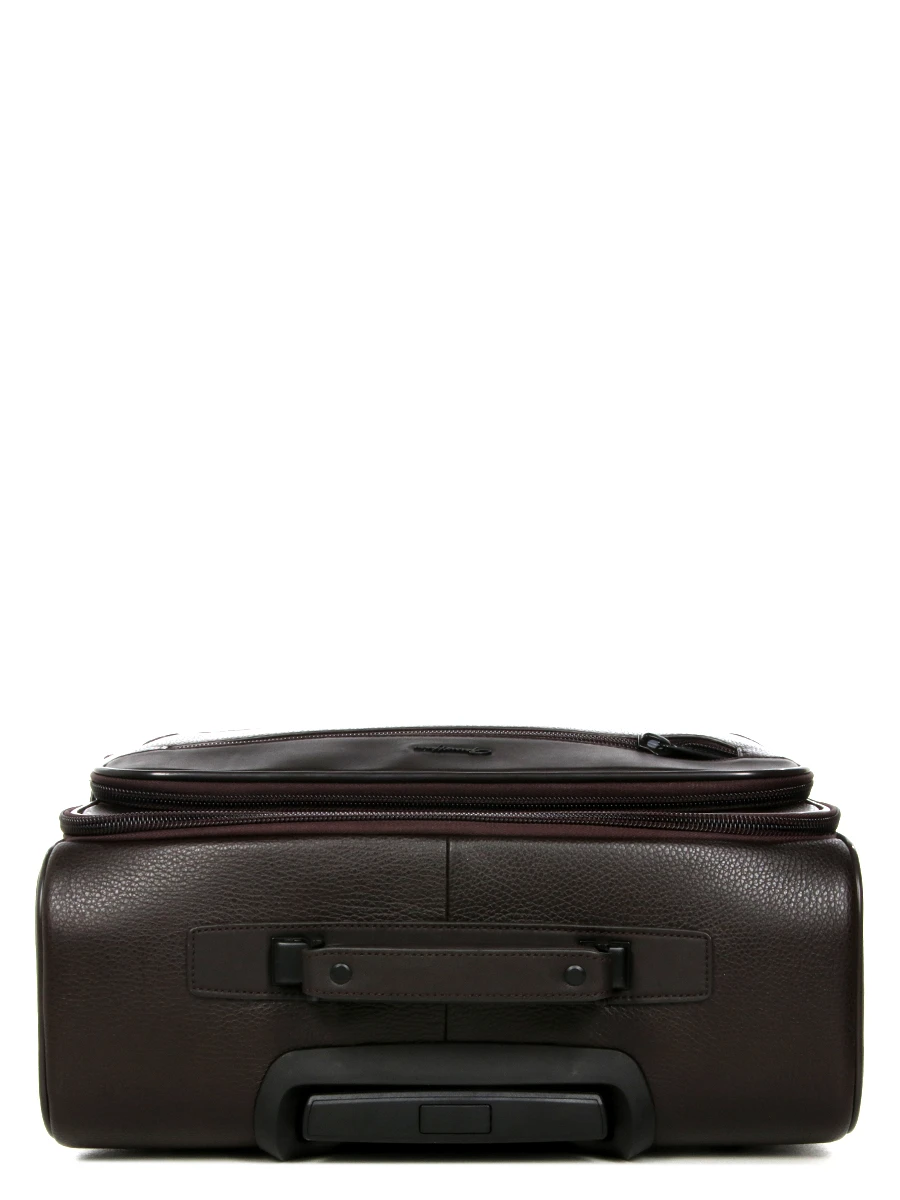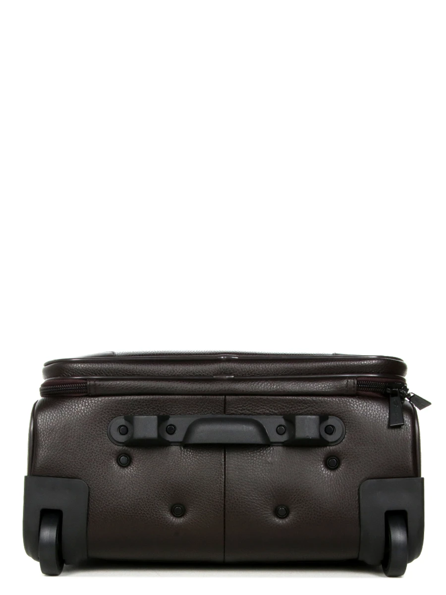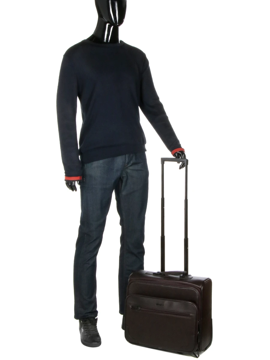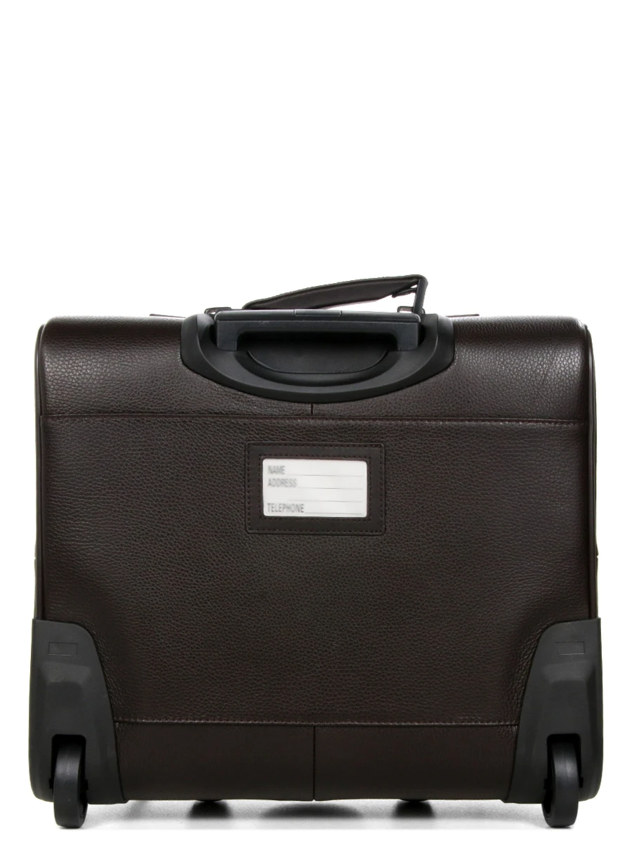 Le pilot case Gérard Hénon Manhattan se tracte agréablement à l’aide de sa poignée télescopique double canne à position réglable et de ses 2 petites roues. Si l’on préfère, il peut être tenu à la main par sa large poignée haute renforcée. Pour des trajets l’esprit serein, il est possible de glisser un petit cadenas (non fourni) dans ses curseurs troués et de laisser bien en vue les coordonnées de son propriétaire en les inscrivant sur l’étiquette de son porte adresse. Enfin, pour préserver son beau revêtement d’une usure prématuré, il est doté de renforts rigides sur le dessous et fourni avec une housse de rangement en tissu.