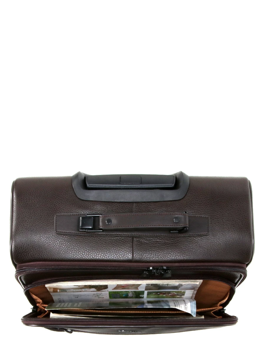 Le pilot case 2 roues Gérard Hénon Manhattan dispose d’un grand compartiment entièrement doublé pouvant accueillir quelques tenues de rechange et une trousse de toilette, par exemple. Dans ce cas, pour maintenir bien en place le linge, il suffit d’utiliser ses 4 sangles ajustables. Pour un ordinateur jusqu’à 13 pouces, une grande poche matelassée est également présente. Cordons d’alimentation, batterie externe et accessoires multimédia en tout genre peuvent être sériés dans sa grande poche zippée. Pour quelques documents et feuilles volantes, sa grande poche frontale est équipée d’un trieur souple. Sa petite poche avant à zip permet quant à elle de laisser accessible le portefeuille, le téléphone et les titres de transport, par exemple.