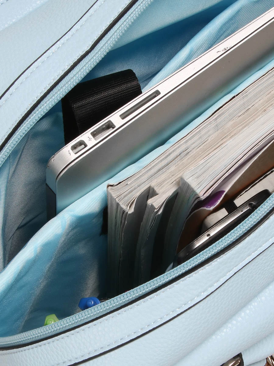 Le pilot case souple Olivia Lauren Carmen dispose d’un grand compartiment pouvant accueillir une multitude de dossiers au format A4. Une poche matelassĂ©e amovible est conçue pour loger un ordinateur jusqu’Ă 16 pouces. Son chargeur trouve sa place dans la poche zippĂ©e situĂ©e en face. Trois poches plates permettent d’y glisser des accessoires tels que le tĂ©lĂ©phone accompagnĂ© de sa coque entre autres. Pour en finir avec les recherches interminables de stylo au fond du sac, il comporte trois passants. Sur la paroi frontale, trois poches dont deux Ă rabat et une zippĂ©e, en plus d’ajouter au caractère de la pièce, Ă©largissent les possibilitĂ©s d’organisation. En effet, batterie nomade (non comprise), cartes de transport et autres cartes de de visites peuvent y ĂŞtre glissĂ©es.