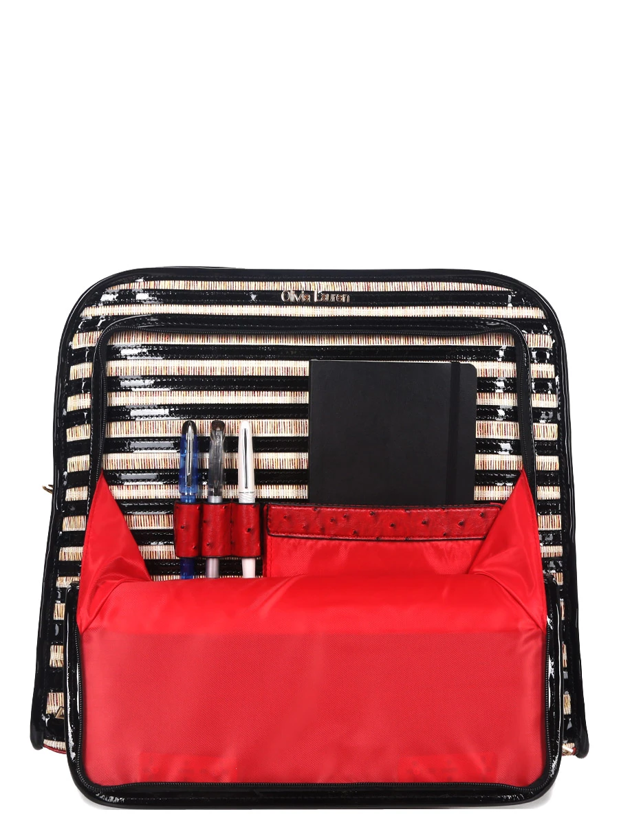Le pilot case Olivia Lauren Stripes 11 pouces est un vĂ©ritable accessoire de mode. Conçu pour accompagner les femmes dans leurs dĂ©placements de tous les jours et notamment en voyage d’affaires, ce sac allie style, confort et praticitĂ©. Avec son mix de revĂŞtement Ă rayures et façon cuir d’autruche, il assure un look audacieux et contemporain. Il dispose d’une fabrication solide en polyurĂ©thane. Son agencement intĂ©rieur permet de ranger un maximum de documents et d’affaires personnelles avec organisation.