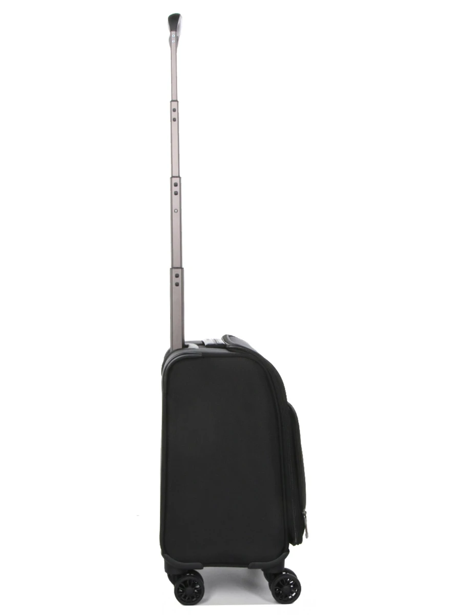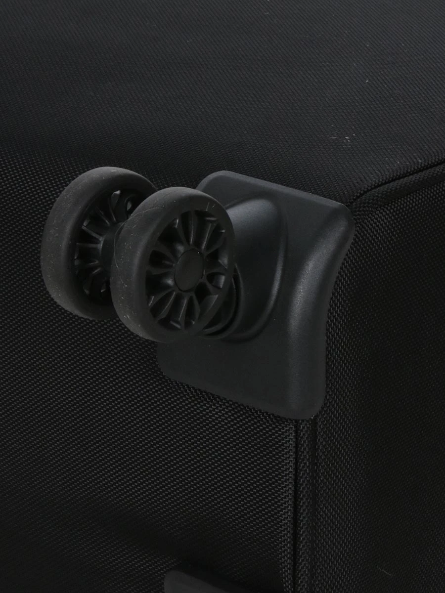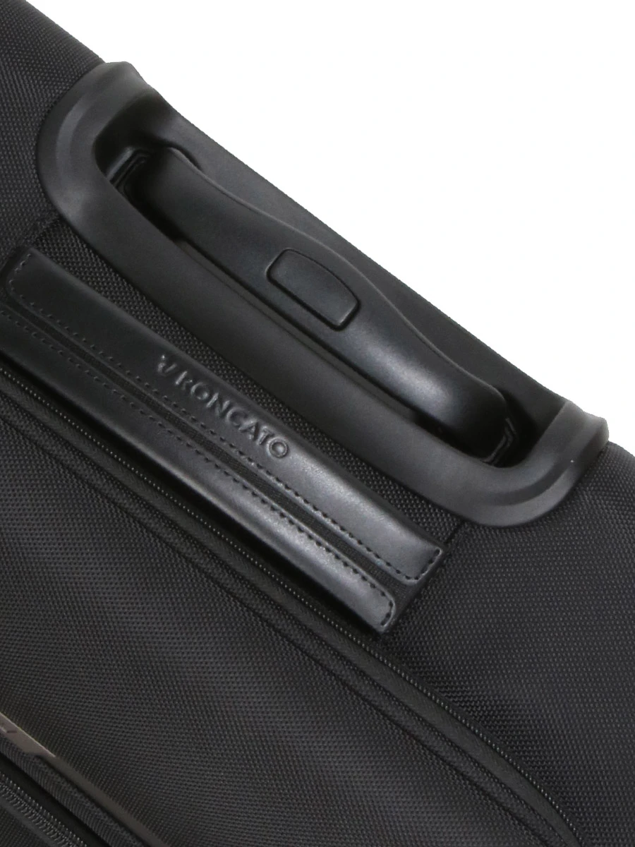 Le pilot case Roncato Biz 4.0 glisse avec fluiditĂ© sur ses 4 doubles roues multidirectionnelles. Sa poignĂ©e tĂ©lescopique permet de le tracter aussi aisĂ©ment derrière soi qu’Ă cĂ´tĂ© de soi. Pour franchir une volĂ©e de marches, on peut prĂ©fĂ©rer le saisir par sa poignĂ©e haute garnie en simili cuir. CĂ´tĂ© sĂ©curitĂ©, rien n’est laissĂ© au hasard avec sa serrure TSA Ă code intĂ©grĂ©e permettant un verrouillage simple et rapide. Enfin, pour une durabilitĂ© accrue, il est apprĂ©ciable de noter que ses angles sont dotĂ©s de renforts rigides.