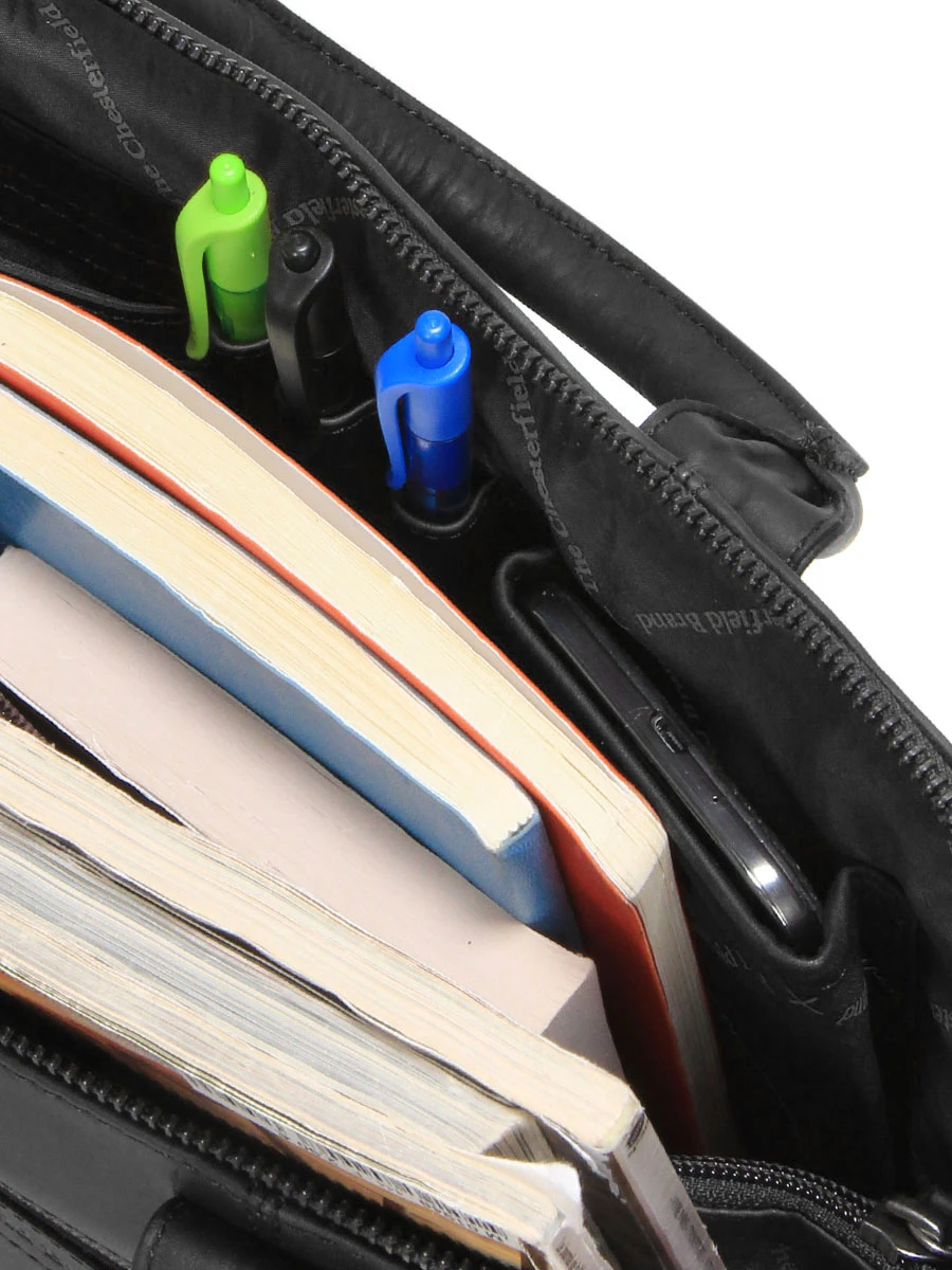 Les deux compartiments doublĂ©s de la sacoche business The Chesterfield Brand Harvey sont sĂ©parĂ©s par une grande poche zippĂ©e. Ils sont tous deux compatibles au format A4. Le premier compartiment est Ă©quipĂ© de quatre passants pour cartes, d’une poche pour tĂ©lĂ©phone, et de trois passants pour stylos. Le second comporte quant Ă lui une poche zippĂ©e pour les petits accessoires. Les documents et objets importants tels que le portefeuille trouvent leur place dans la poche zippĂ©e Ă l’arrière.