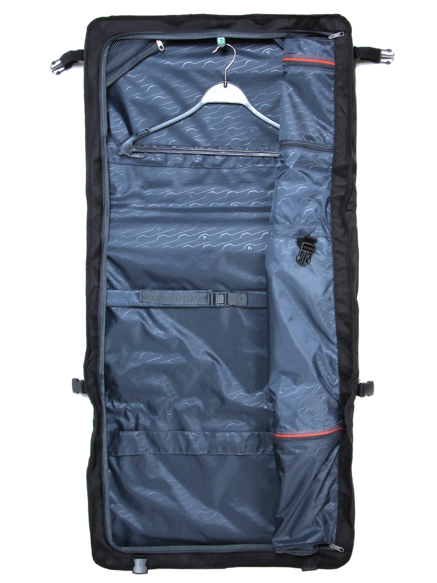 Le porte costumes Roncato Biz 4.0 XL possède un compartiment muni d’un plateau souple de fermeture zippĂ© et de 2 sangles de maintien ajustables pour maintenir efficacement en place 2 costumes et 3 chemises, par exemple. Pratique, son attache porte cintre peut accueillir jusqu’Ă 4 cintres Ă la fois. Il est d’ailleurs fourni avec un cintre. Pour les cravates, les boutons de manchettes, les paires de chaussettes, du petit linge ou divers accessoires de mode, il dispose en sus de 3 grandes poches zippĂ©es et de 2 petites poches en maille filet.