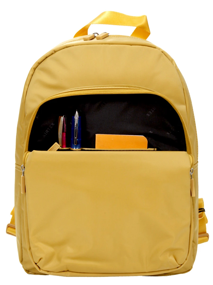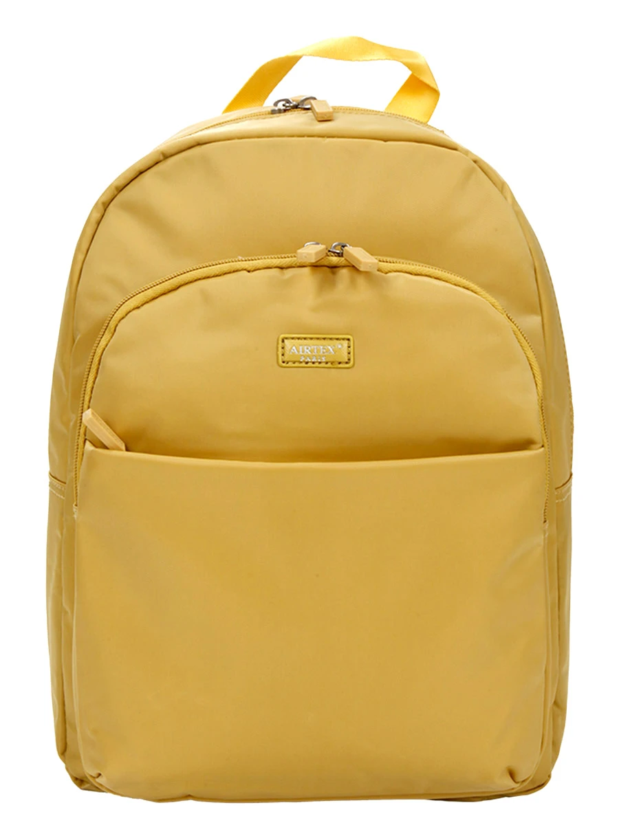 Pour un portage agrĂ©able, le sac Ă dos Airtex Mimas est dotĂ© d’un panneau dorsal moussĂ© et de bretelles rembourrĂ©es et rĂ©glables. Une petite poignĂ©e haute permet de le suspendre Ă une patère ou de le porter Ă la main. Enfin, pour garder son contenu Ă l’abri des chocs, son fond est renforcĂ©.