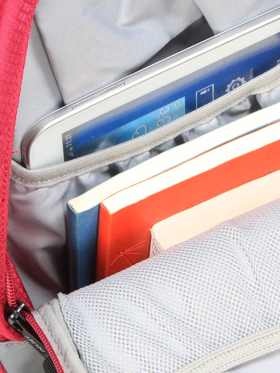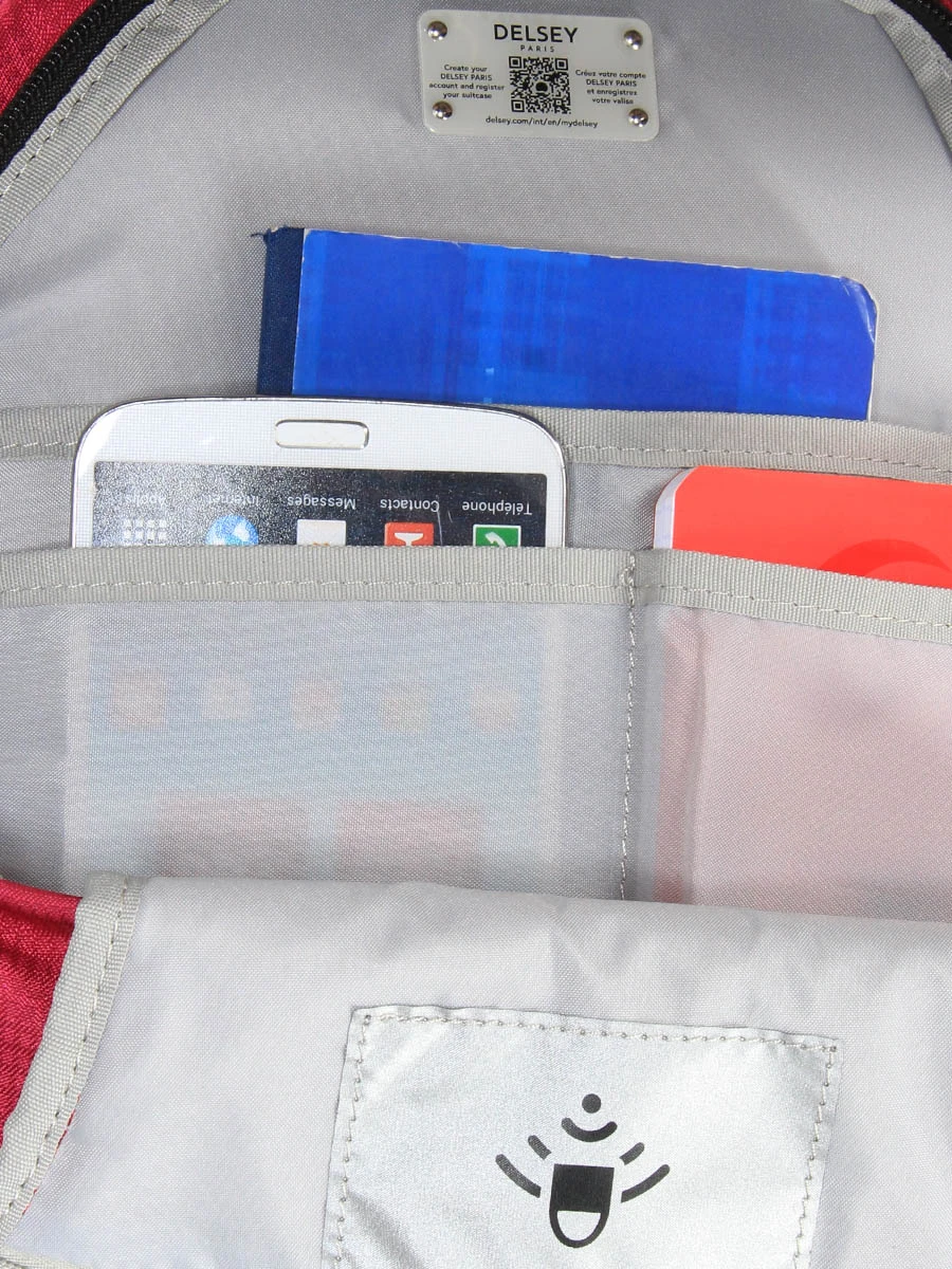 CĂ´tĂ© rangement, le sac Ă dos Delsey Nomade S dispose d’un compartiment pourvu d’une poche renforcĂ©e pour emporter en sĂ©curitĂ© une tablette ou un ordinateur 13 pouces. LĂ , un petite laine, un roman en cours de lecture et diffĂ©rents effets personnels trouvent une place de choix. Sa grande poche frontale renferme une poche Ă doublure anti-RFID ainsi que diffĂ©rentes poches plates pour petites fournitures. Sa poche Ă doublure anti-rayures permet d’emporter avec soin une paire de lunettes, notamment. Sur les cĂ´tĂ©s, 2 poches porte bouteille complètent le tout.