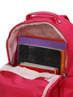 Ce sac Ă dos Kipling Seoul possède un large compartiment fermĂ© par un zip et entièrement doublĂ©. Vos affaires son protĂ©gĂ©es de l’humiditĂ©, et l’intĂ©rieur se nettoie facilement et rapidement si besoin. On trouve une poche plate matelassĂ©e dans laquelle se glisse un ordinateur jusque 15.6 pouces. Une seconde poche plate et plus fine est Ă©galement disponible, pour y ranger le câble d’alimentation par exemple. On peut bien entendu ajouter ses livres, classeurs, pochettes ou encore cahiers au format A4 et 24×32. A l’avant, une première poche extĂ©rieure dispose elle-mĂŞme d’une petite poche pour le tĂ©lĂ©phone et de deux porte-stylos. On y trouve en plus un porte-clĂ© très pratique. Une seconde poche zippĂ©e est situĂ©e Ă l’avant tandis qu’une troisième poche est accessible sur le haut du sac. Ainsi, vous pouvez accĂ©der rapidement Ă vos lunettes de soleil, votre porte-feuille ou encore vos cartes de transport. Enfin, les deux poches latĂ©rales offrent un espace pour le parapluie ou une bouteille d’eau.Â