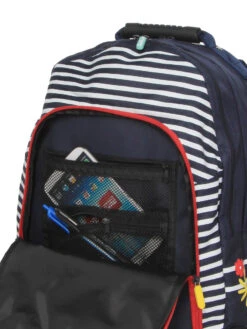 Côté rangement, le sac Little Marcel Blossom opte pour 2 compartiments spacieux pour accueillir des cahiers 24 x 32 et des classeurs à anneaux pour feuilles A4, entre autres, 2 petites poches zippées pour retrouver en un rien de temps certaines fournitures et une grande poche frontale pour laisser à portée de main des essentiels (collation pour le petit creux de la matinée, pass pour la cantine, etc.).