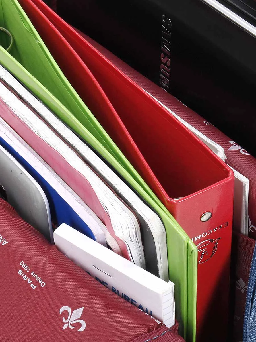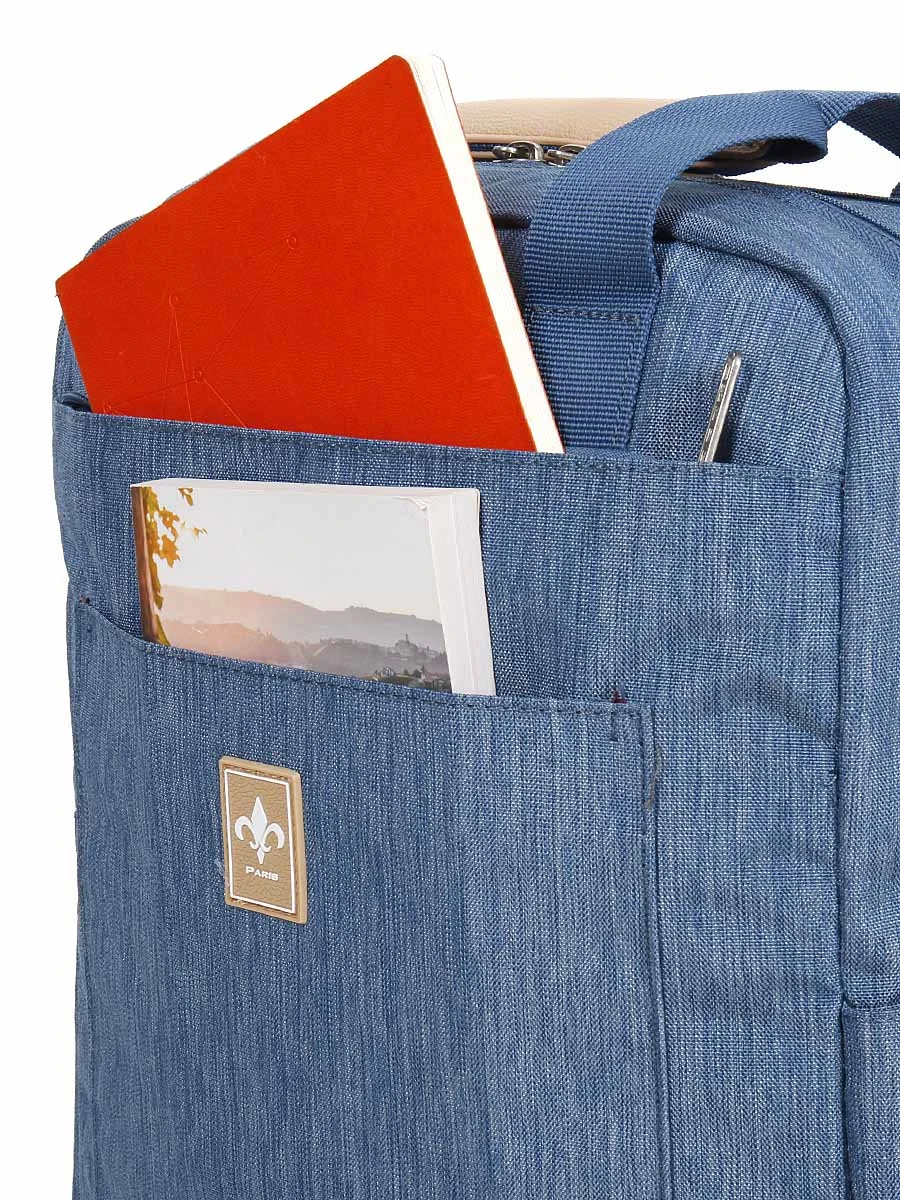Le sac Ă dos Lys Urban possède un compartiment pour ordinateur jusqu’Ă 15.6 pouces. Le deuxième compartiment, en plus de pouvoir contenir des documents au format A4, comporte plusieurs poches. D’abord, une grande poche plate maintient les dossiers bien Ă la verticale pour garantir qu’ils ne se froissent pas. En face, trois petites poches sont parfaites pour les cartes. A l’extĂ©rieur, deux poches frontales viennent ajouter aux possibilitĂ©s d’organisation. La première est zippĂ©e et contient un porte-clefs dĂ©tachable pour en finir avec les frayeurs de fin de journĂ©e. Elle est profonde et peut Ă©galement loger des carnets par exemple. La seconde poche frontale permet d’y glisser un livre pour un accès rapide par exemple. Une petite poche plate latĂ©rale permet de ranger des petits objets supplĂ©mentaires. A l’arrière, une poche fermĂ©e par un bouton pression peut garder le portefeuille et autres documents importants en sĂ©curitĂ©.