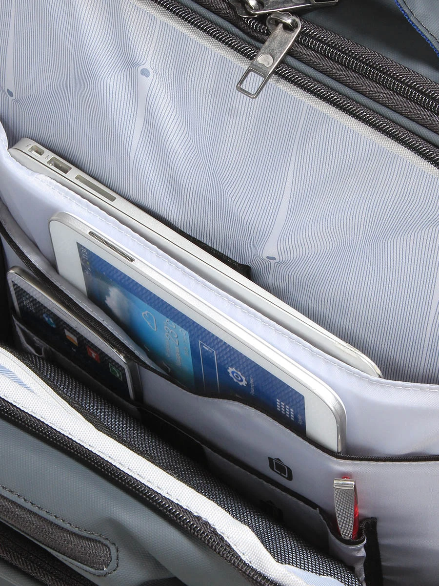 Le sac à dos Delsey Parvis Plus offre un compartiment avant dédié au transport en sécurité d’un ordinateur (jusqu’à 17.3 pouces), d’une tablette et de divers accessoires multimédia à glisser chacun dans des poches spécifiques. Le compartiment arrière dispose quant à lui d’une ouverture en U permettant un chargement commode à la manière d’une valise. Là, un peu de linge trouve une place de choix. Ses 4 sangles ajustables permettent d’éviter les faux plis sur les vêtements bien pliés. A l’avant, sa plus grande poche sert de rangement pour ses bretelles escamotables. Sa petite poche haute permet de laisser à portée de main le pass pour les transports ou un trousseau de clés, notamment. Sur les côtés 2 poches latérales à soufflet permettent de transporter une bouteille d’eau.