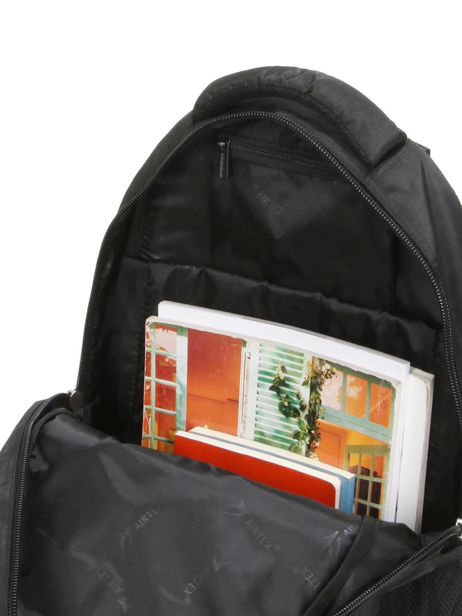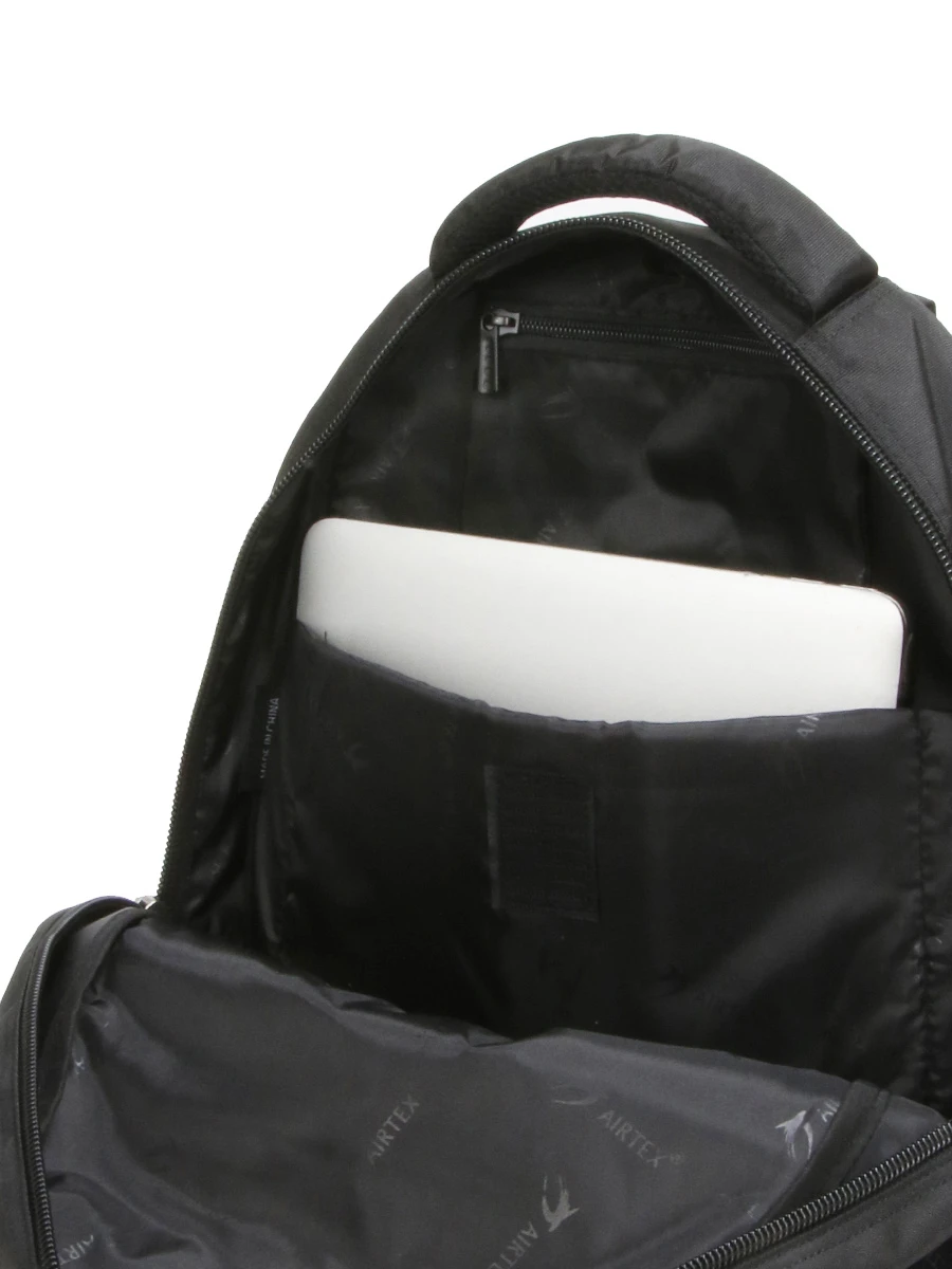Le compartiment principal du sac Ă dos Airtex Casual est très vaste. Fournitures de bureau ou scolaires, ou mĂŞme vĂŞtements pour une escapade d’un week-end y trouvent une place confortable. A l’arrière, une poche rembourrĂ©e peut loger un ordinateur jusqu’Ă 14 pouces. Par-dessus, la petite poche zippĂ©e est idĂ©ale pour la carte de transport ou les papiers d’identitĂ© par exemple. Le second compartiment, plus petit, peut accueillir des documents au format A4. Pas moins de 5 poches extĂ©rieures viennent complĂ©ter les possibilitĂ©s d’organisation : deux latĂ©rales extensibles pour la gourde et le parapluie, deux petites frontales, et une grande qui regorge de petits rangements astucieux pour les accessoires. Elle dispose en effet de deux poches plates et deux passants pour stylos pour les garder en accès rapide.