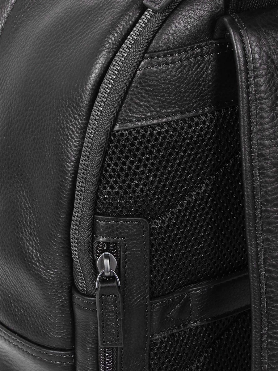 Le sac ordinateur Gérard Hénon Amsterdam Dome est équipé d’un panneau arrière matelassé réalisé en mesh pour une bonne ventilation du dos, de bretelles moelleuses ajustables à taille pour une répartition agréable de la charge, d’une anse renforcée en cuir pour éviter les cisaillements et d’un passant arrière pour le fixer au trolley d’un bagage à roulettes. ll s’adapte ainsi aisément aux préférences de portage de chacun. Pour prendre soin de son contenu par tous les temps, il est entièrement doublé et pourvu d’un fon renforcé en cuir. Il est en prime fourni avec une housse de rangement permettant de le stocker avec soin.