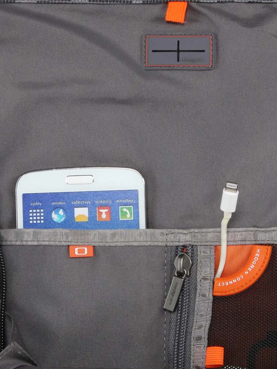 A l’extĂ©rieur, ce sac Ă dos ordinateur Hedgren Link Flap a tout pour plaire. En effet, il se complète de 2 poches frontales zippĂ©es, dont 1 bien organisĂ©e. Celle-ci comprend le passe câble et 1 poche pour placer la batterie et recharger ses appareils Ă©lectroniques avec quiĂ©tude, ainsi qu’une poche pour le Smartphone des plus utiles. Elle se ferme Ă l’aide de zips latĂ©raux.