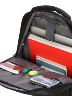 Le sac Madisson Business Slim dispose d’un compartiment doublĂ© muni d’une poche matelassĂ©e adaptĂ©e pour un ordinateur jusqu’Ă 14 pouces. Il peut Ă©galement accueillir quelques documents A4, des revues techniques… Ses 2 poches ouvertes et ses 2 passants pour stylos permettent de sĂ©rier certaines fournitures de bureau. A l’avant, 2 poches zippĂ©es permettent de garder Ă portĂ©e de main un tĂ©lĂ©phone, un portefeuille, des titres de transport et un trousseau de clĂ©s, entre autres. La plus grande des 2 est entièrement matelassĂ©e permettant ainsi d’y placer une tablette si nĂ©cessaire. Sur le cĂ´tĂ©, une poche porte bouteille complète le tout.