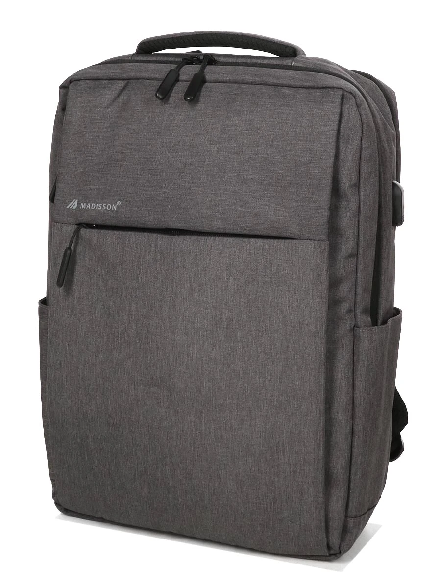 CĂ´tĂ© rangement, le sac Madisson Business USB dispose d’un compartiment avant pouvant ĂŞtre rĂ©servĂ© pour des documents de travail ou un peu de linge en fonction des besoins et des utilisations. LĂ , une poche zippĂ©e, 2 poches plates, des passants pour stylos et une attache porte clĂ©s permettent de sĂ©rier certaines fournitures. Son compartiment arrière renferme 2 poches matelassĂ©es : l’une pour une tablette et l’autre pour un ordinateur jusqu’Ă 15.6 pouces. Devant, 2 grandes poches Ă zip permettent de laisser accessibles le portefeuille et le tĂ©lĂ©phone. Sur les cĂ´tĂ©s, on trouve en sus 2 poches porte bouteille.