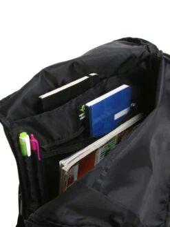 Le sac business rolltop Roncato Brooklyn Revive dispose d’un compartiment avant adaptĂ© aussi bien pour des documents de travail qu’un peu de linge en fonction des besoins et des utilisations. LĂ , 2 poches ouvertes, une poche zippĂ©e en mesh et 2 passants pour stylos permettent de sĂ©rier fournitures de bureau et accessoires multimĂ©dia. Son compartiment arrière possède une structure moussĂ©e permettant un transport en sĂ©curitĂ© d’une ordinateur jusqu’Ă 15.6 pouces. Sa petite poche rembourrĂ©e convient pour une tablette. Sa poche frontale permet d’accĂ©der rapidement Ă un trousseau de clĂ©s ou au tĂ©lĂ©phone, par exemple. Une poche porte bouteille est prĂ©sente sur le cĂ´tĂ©. On trouve une dernière poche zippĂ©e discrètement intĂ©grĂ©e Ă son dossier.